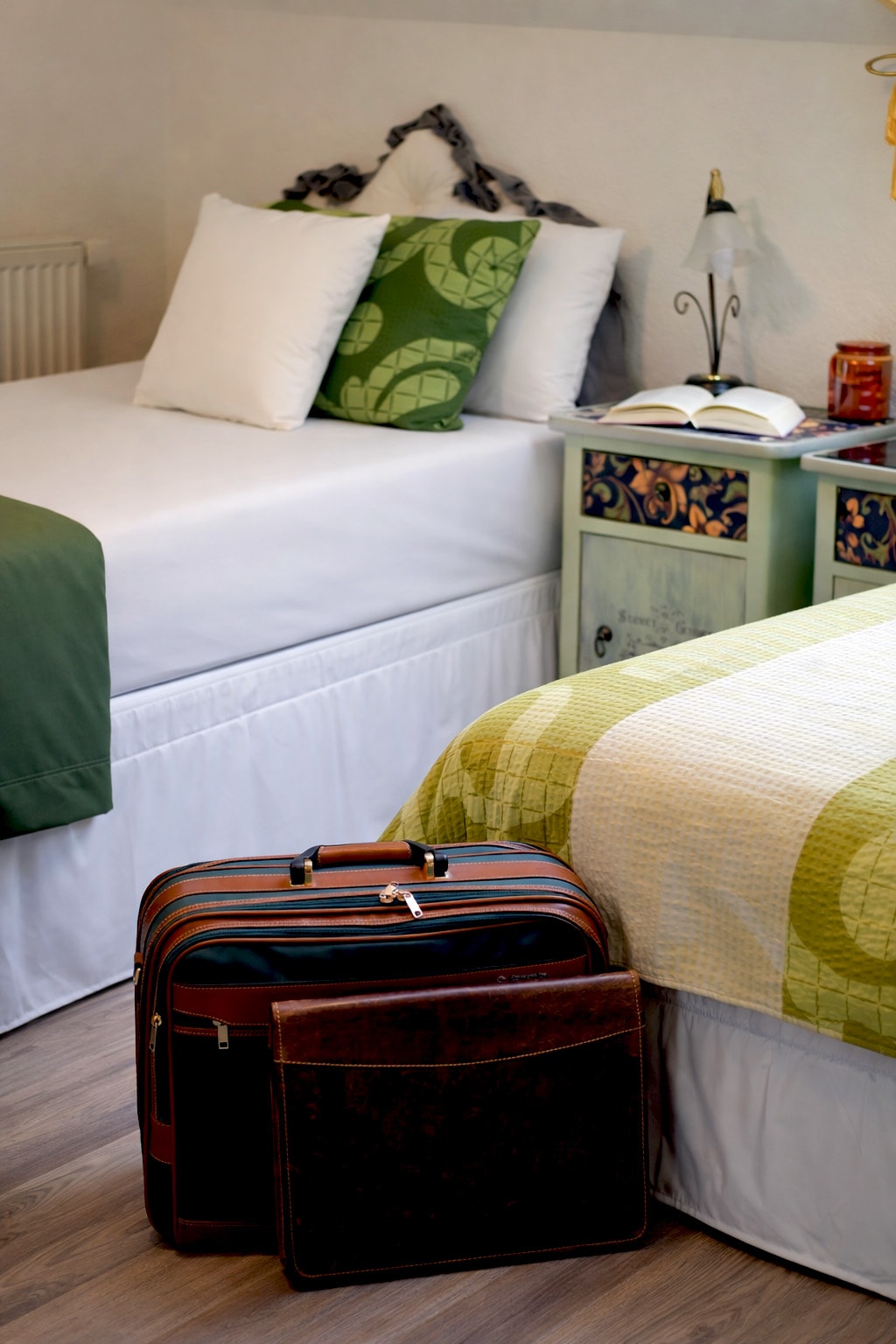 Experimenta un «refugio forestal aislado» con nuestras cómodas habitaciones con techo alto frente al estanque y al bosque. Todas las habitaciones tienen baños privados y están amuebladas con muebles antiguos, camas Tempur con sábanas y toallas de algodón 100%, todas tejidas a medida para Meyana. El edificio fue construido en 1885 y fue completamente renovado en 2017. Como el edificio está hecho de mampostería, es fresco en verano y cálido en invierno. Puedes encontrar más información sobre el uso del edificio en el artículo “Acceso para huéspedes”