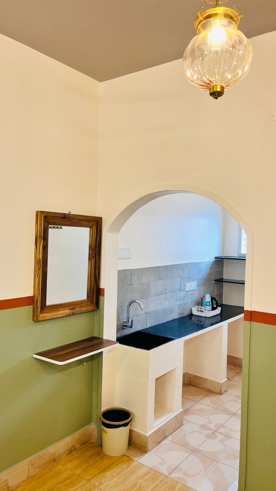 tranquilo y agradable a ✨️menos de 1 km de Ramana Ashram y a 2,3 km del templo. Los autos siempre están disponibles desde la casa de huéspedes hasta el templo. 🛕 también tenemos habitaciones con aire acondicionado con vistas a la montaña en el primer piso , segundo y tercer piso. Si quieres habitaciones con aire acondicionado, te proporcionaremos el enlace. Nota: Estacionamiento fuera de las instalaciones, cctv habilitado * llaves que puedes conseguir en recepción