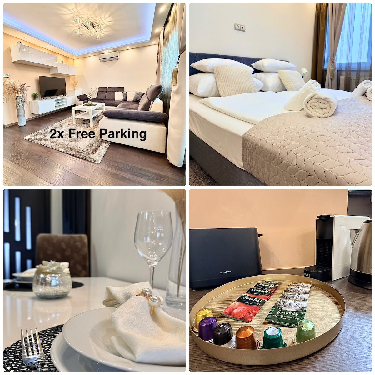 ¡Te damos la bienvenida a tu elegante alojamiento Local-Lux en Kecskemét! Este luminoso y espacioso departamento de 70 m² es la combinación perfecta de diseño moderno y comodidad a nivel de hotel. Los dos dormitorios separados, la cómoda sala de estar, el balcón privado y el garaje cerrado para dos coches lo convierten en una opción ideal para familias, viajeros de negocios y estancias más largas. Disfruta de conexión Wi-Fi rápida, aire acondicionado, llegada autónoma y un interior relajante y cuidadosamente diseñado.