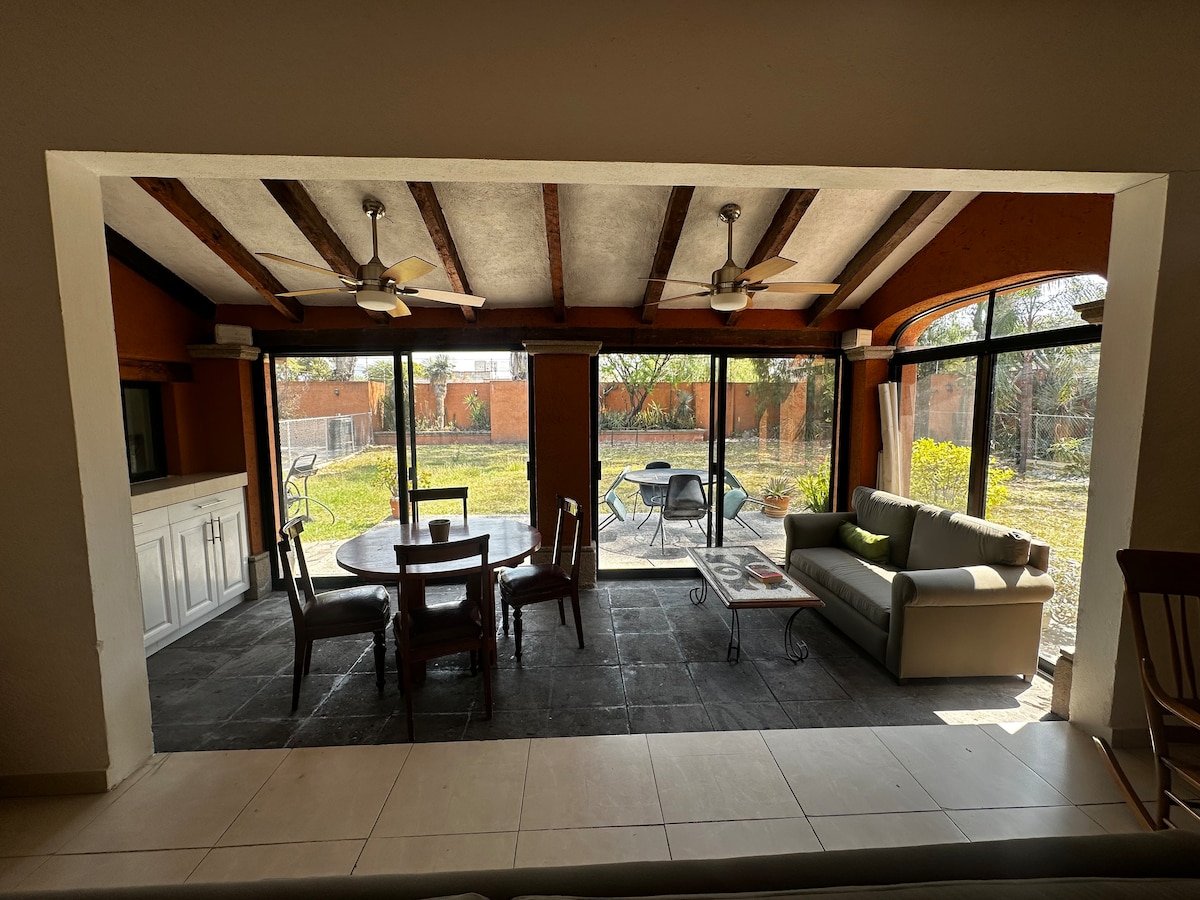 Casa tipo Loft muy amplia e iluminada, rodeada de árboles, jardines, terrazas, 3 habitaciones, mesa de billar, asador,estacionamiento privado con 5 cajones de estacionamiento, a dos cuadras del Hotel Misión, del club de golf y la plaza de toros. Vivimos en la casa de junto para lo que se ofrezca. POR FAVOR, NO FIESTAS NUMEROSAS O RUIDOSAS. BIENVENIDOS A CASA
