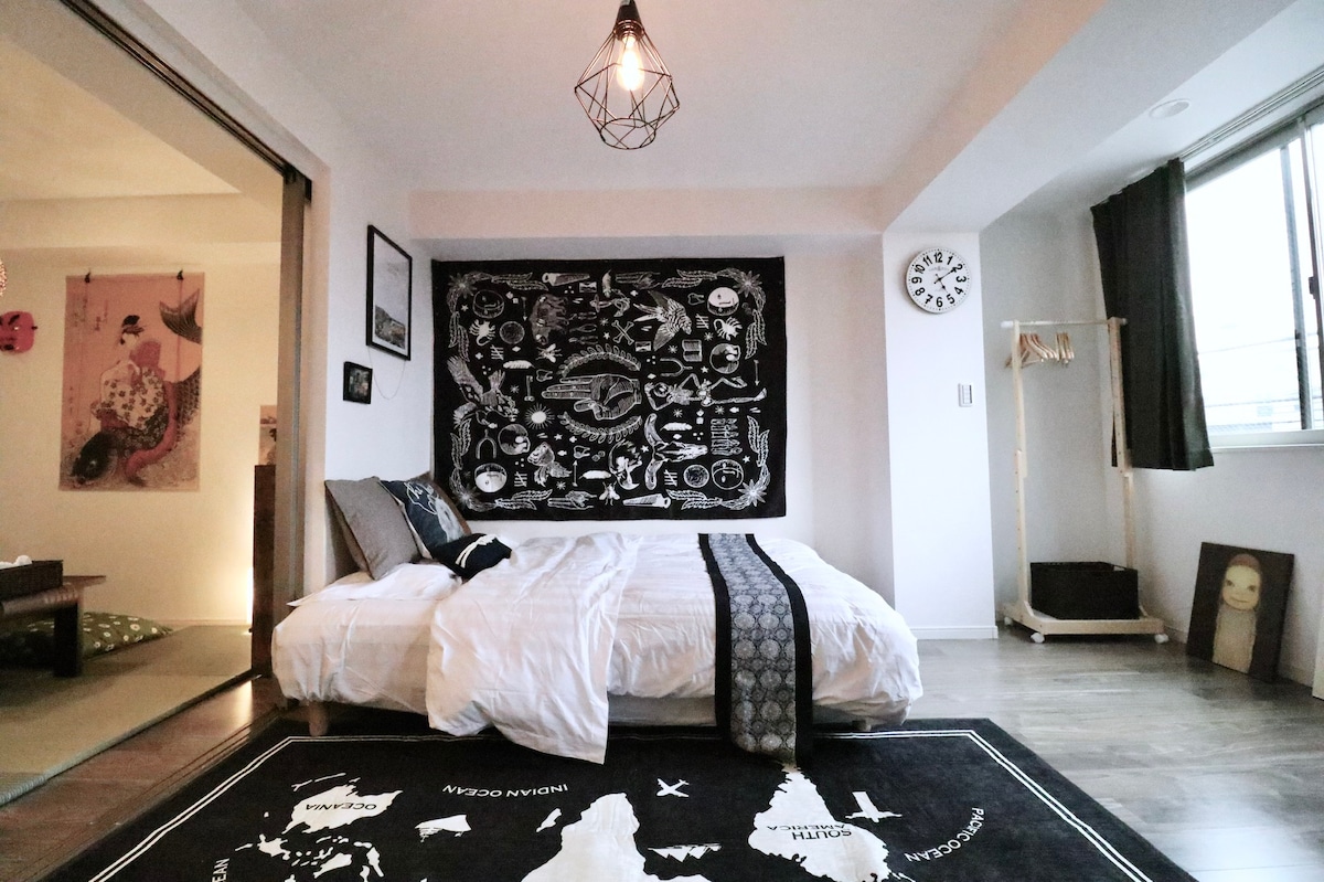 * Habitación de 70 metros cuadrados * La habitación occidental para 4 personas tiene 2 camas dobles estándar (147 * 200 cm) Cama de madera maciza Muji * La habitación japonesa para 4 personas tiene 2 camas dobles estándar (147 * 200 cm) con colchones Muji * Se pueden añadir dos futones individuales en la habitación abierta (2000 yenes por futón adicional) Esta habitación tiene una amplia cocina y comedor, ideal para reunirse con toda la familia cuando viaja * Baño TOTO, cómoda bañera, inodoro sin tratamiento, área de lavabo, ideal para un baño caliente después de un día de viaje, ¡también puede tener la misma comodidad que en casa!