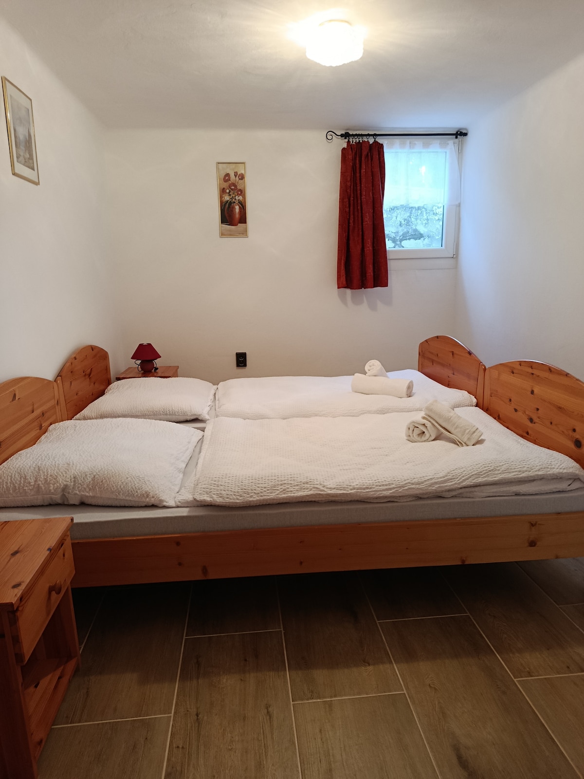 Vidéki nyugalom és elegancia vár Kisbattyánban, ebben a bájos vendégházban. A klasszikus stílusú enteriőr, a kényelmes ágyak és a kandalló meghitt légköre tökéletes hátteret biztosít a pihenéshez. A nagy kert és a terasz a természet szépségeivel ajándékoz meg, miközben élvezheted a békés, idilli környezetet. Ideális pároknak és kisebb családoknak, akik nyugalmat keresnek.