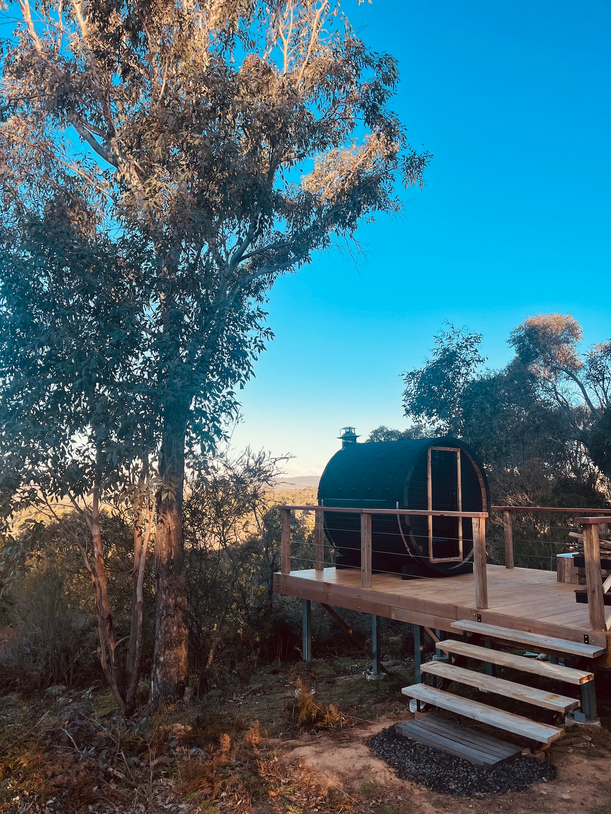 Enjoy an art, writing or yoga retreat, Work from home, or a wedding. Very private, sweeping rural views, 10 min walk to heritage cafes & galleries. Easy access. No steps. Pets welcome 🐶 fully fenced acre. French flax bed linen, heated bathroom floor, wood fire 🔥, yoga mats, merino socks, Wifi, a small library 📚 Queen & sofa bed. Fresh cafe bread, eggs, cheese, fruit & pantry provided, De Longhi espresso, Microwave, mini oven. Mona Farm 5min, Canberra 1h, South Coast 40min, ski fields 3h