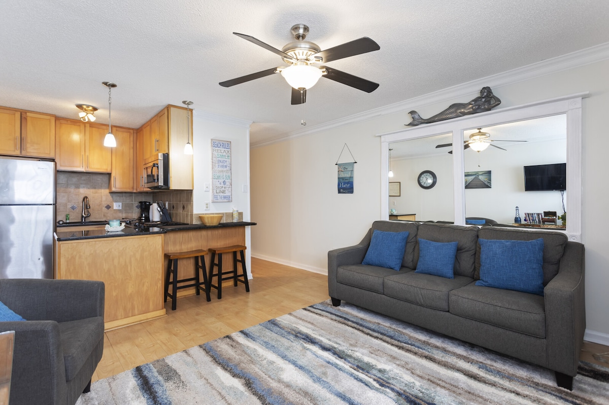 ¡Estudio a solo 3 minutos a pie de la playa y el sonido! Decorado profesionalmente para darte la bienvenida al estilo de vida de Topsail. Perfecto para una pareja o para una escapada solo para ti. Sala de estar abierta con un sofá contemporáneo informal, con una cocina completa con electrodomésticos de alta gama. Comedor del bistró para disfrutar de la comida local. ¡Comodidad con cama tamaño queen para los dulces sueños! Hermoso baño con una gran ducha a pie y tocador personalizado. Trae tanta ropa como quieras, el armario es fabuloso. TV inteligente con WIFI.