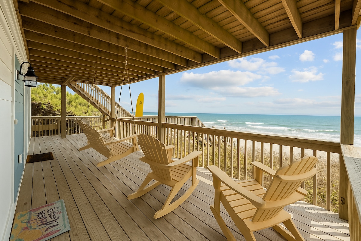 Frente al mar 4BR | Columpio en el porche + Avistamiento de delfines