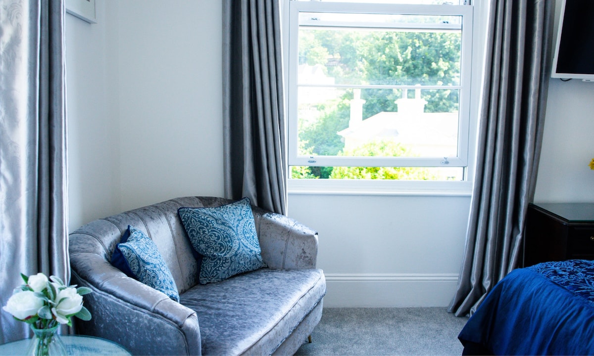 BELLA VISTA 3 star guest accommodation situated in a private garden square only a few hundred metres from Paignton seafront and shopping centre. All bedrooms have their own facilities. FREE ON-SITE PARKING (weather dependant, ie parking is not guaranteed ). A very short level walk from the rail, coach and bus stations. Currently board is Room Only ( Please enquire about our amazing breakfast hamper that can be delivered to your room at a time of your choice)