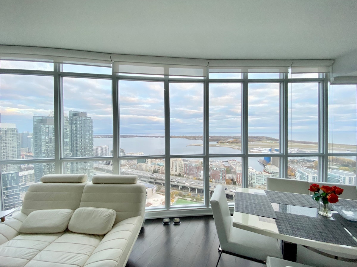 Tendrás TODA la unidad para ti y no la compartirás con otras personas. Moderno apartamento de 1 dormitorio que ofrece impresionantes vistas al lago. La suite se encuentra justo enfrente de CN Tower, Rogers Centre, Metro Convention y Ripley 's Aquarium. La ubicación privilegiada lo ayudará a maximizar su hospedaje para explorar Toronto, disfrutar de eventos deportivos o asistir a reuniones de negocios a poca distancia a pie. Ofrecemos wifi, televisión por cable, lavadora, secadora y estacionamiento de pago.