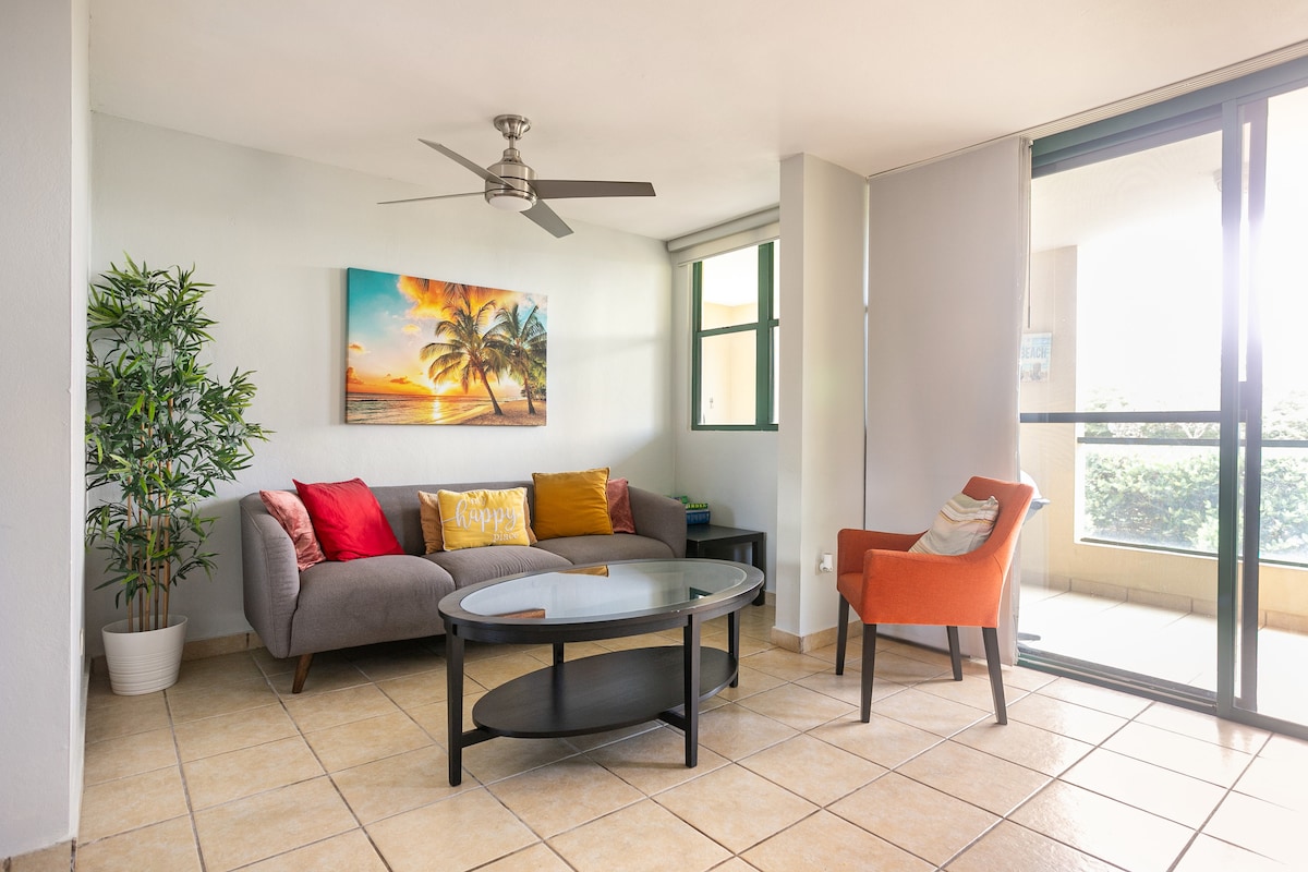 Penthouse in Aquatika with a private terrace, resort pools, and beach access. Fully equipped penthouse with access to 6 shared pools with jacuzzis, including a Lazy River. Features a spacious terrace overlooking Aquatika’s main pool, ideal for relaxing or spending time with family and friends. Located about 35 minutes from the airport and 40 minutes from San Juan, Condado, and metro areas.