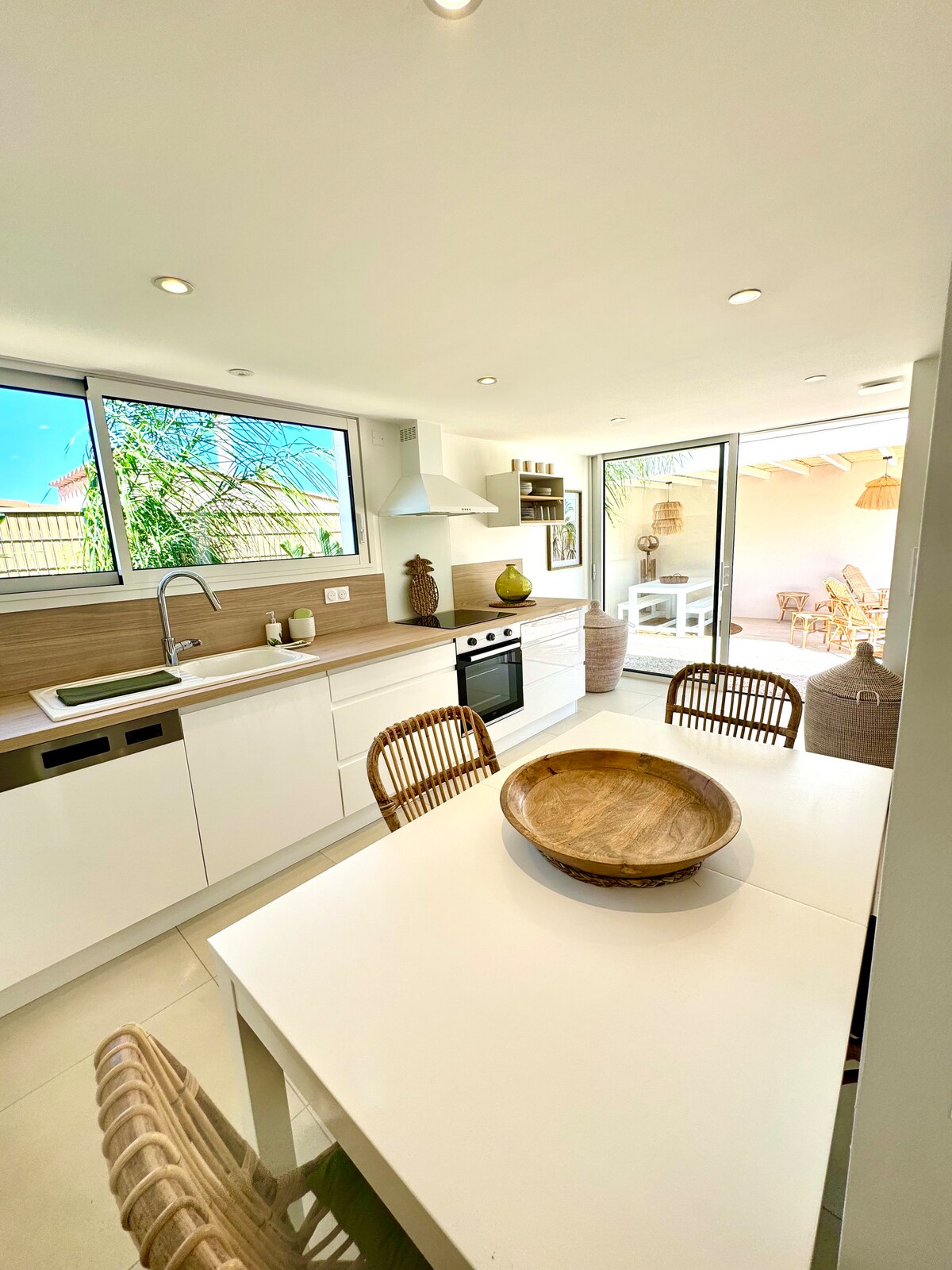 Situado en el corazón del Village des Sables, residencia segura en Torreilles Plage en un entorno único y protegido clasificado como Natura 2000. Acceso directo a la playa situada a 200 m. Villa con encanto de arquitectura atípica totalmente renovada Cuenta con un agradable jardín cerrado con terraza de madera zona de relax y terraza de madera zona de comedor a la sombra con plancha eléctrica Las riquezas del interior del país catalán, de la costa roja (Colliure, Banyuls) ofrecen innumerables escapadas.