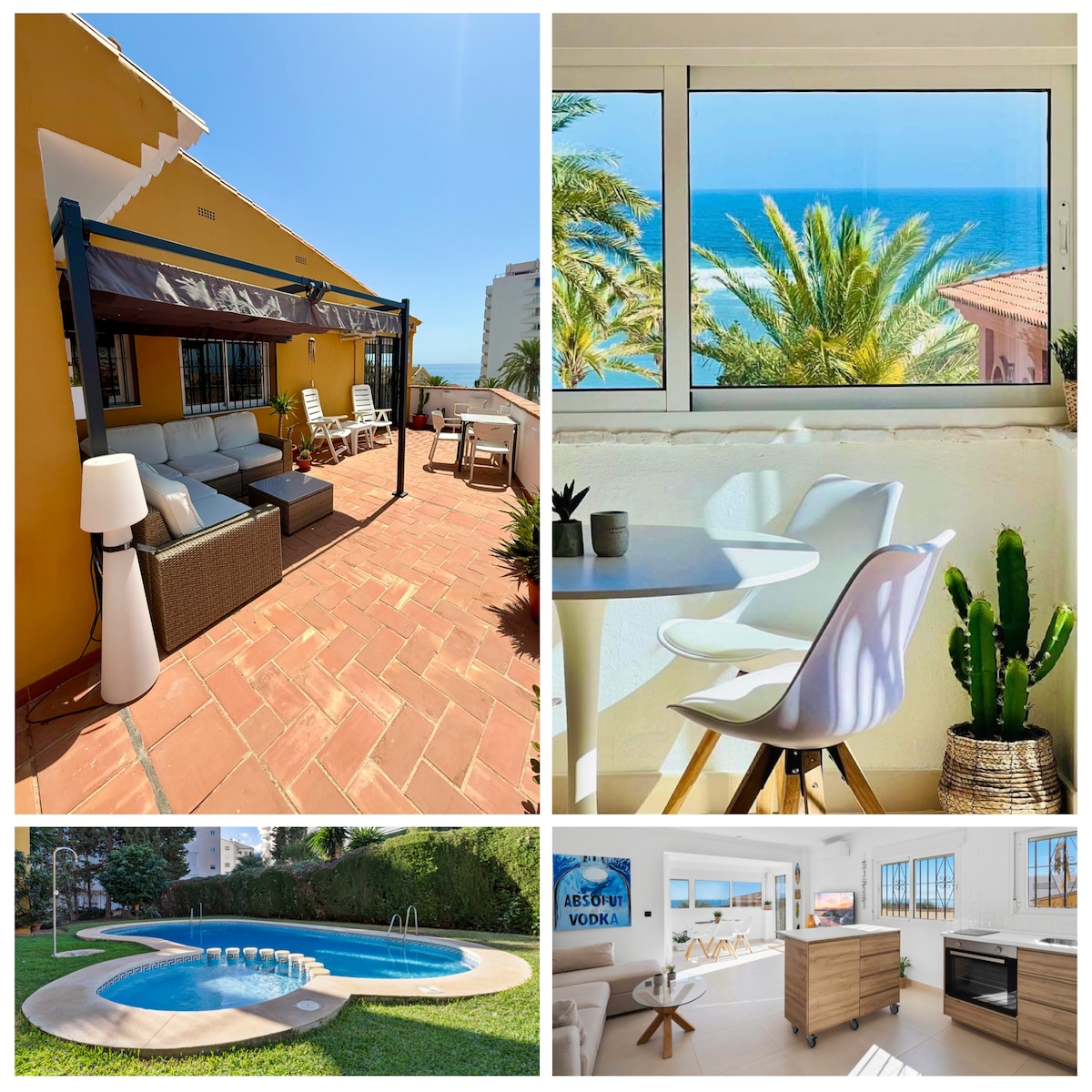 Hermoso ático con una gran terraza moderna y vistas al mar virgen con vistas al mar Mediterráneo y a las montañas. Desde la terraza se puede disfrutar de la puesta de sol perfecta. Excelente ubicación (a solo 20 minutos del aeropuerto) en el complejo vacacional de Benalbeach junto a la playa. Toda la decoración y el mobiliario se han preparado con buen gusto pensando en el disfrute de nuestros huéspedes y es ideal para pasar tus mejores vacaciones de verano, así como la temporada de invierno en la zona costera de Benalmádena.