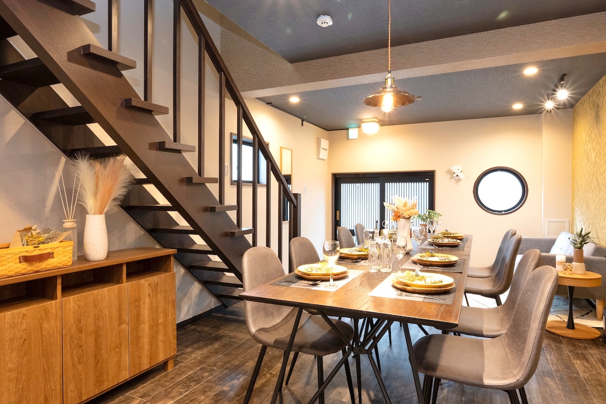 A 1 estación de la estación de Osaka, a 3 minutos de la estación | 5LDK de tres pisos para un máximo de 12 personas | Ideal para grupos, familias y niños. Nuevo estilo japonés renovado + estilo nórdico
