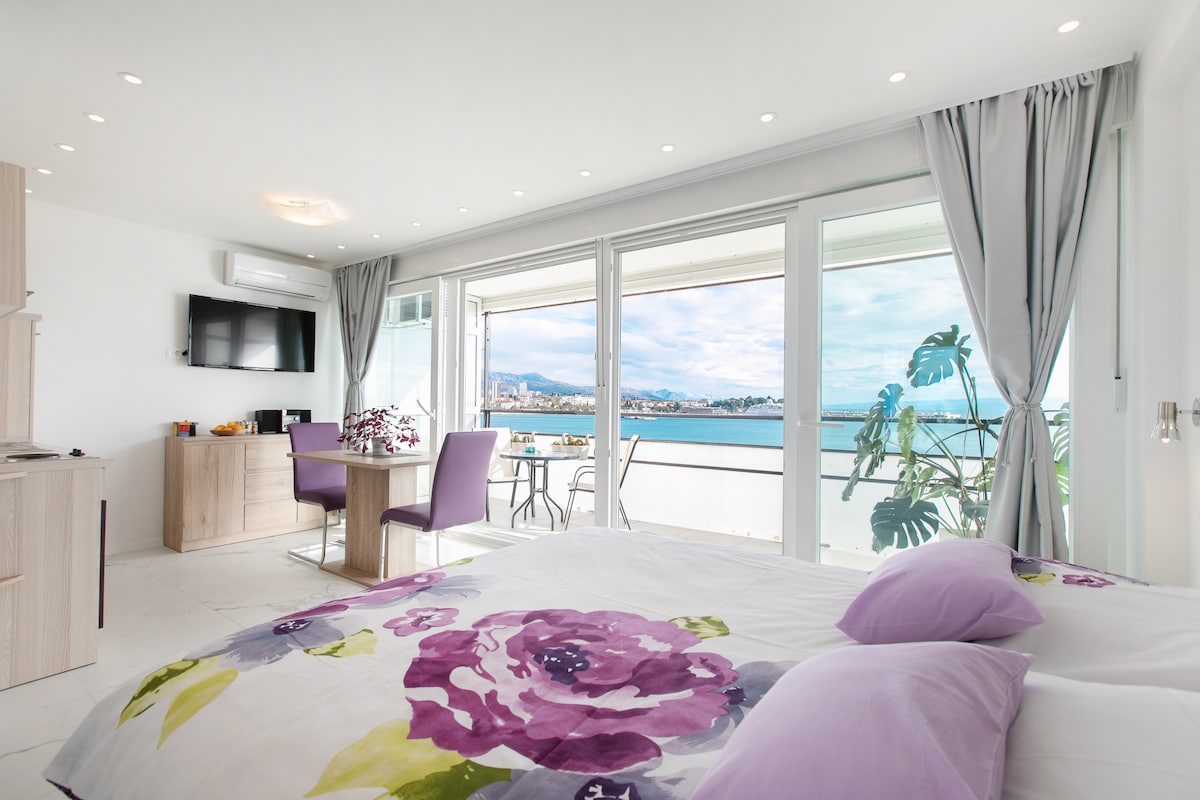 This amazing and stylish seafront apartment with a STUNNING sea view is located in the very center of the beautiful “lungomare”, the Riva promenade, at the seashore and just beneath Marjan Hill, a very popular recreational zone for outdoor activities like biking, walking and jogging. This modern 4star brand new renovated 73m2 apartment is extraordinary positioned for visiting the UNESCO site of Diocletian’s Palace, restaurants, bars, nearby beaches and other popular places in the city.