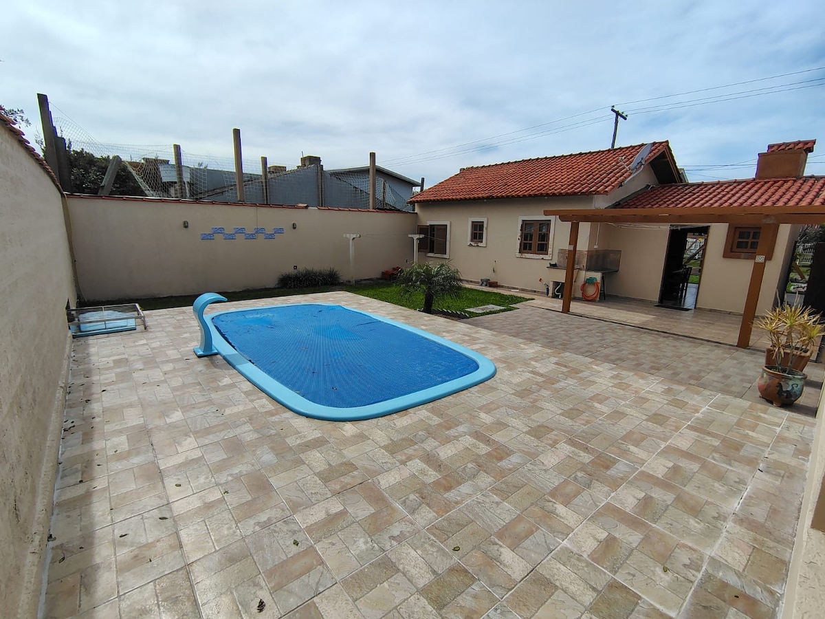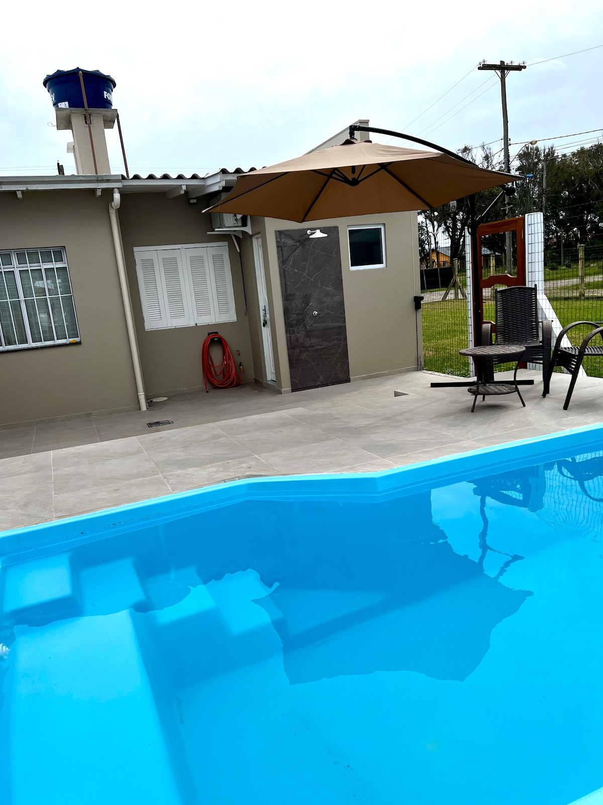 Gran alojamiento para disfrutar de las vacaciones con familiares y amigos, ya que el lugar tiene mucho espacio para divertirse. Amplio patio cerrado con piscina y quiosco con barbacoa y baño. Cerca de la playa de Tramandaí.