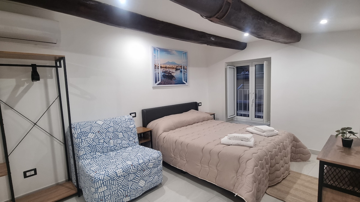 El apartamento ha sido completamente renovado por un reconocido arquitecto napolitano. Cuenta con dos dormitorios dobles, cada uno con una cama francesa, y otra cama doble en la sala de estar. La cocina tiene una isla en el medio con una barra de aperitivos y una placa de cocción. El baño tiene una ducha extragrande. Para acceder al apartamento hay que subir unas escaleras (segundo piso). Parada de metro (línea 1): Università y/o Municipio.