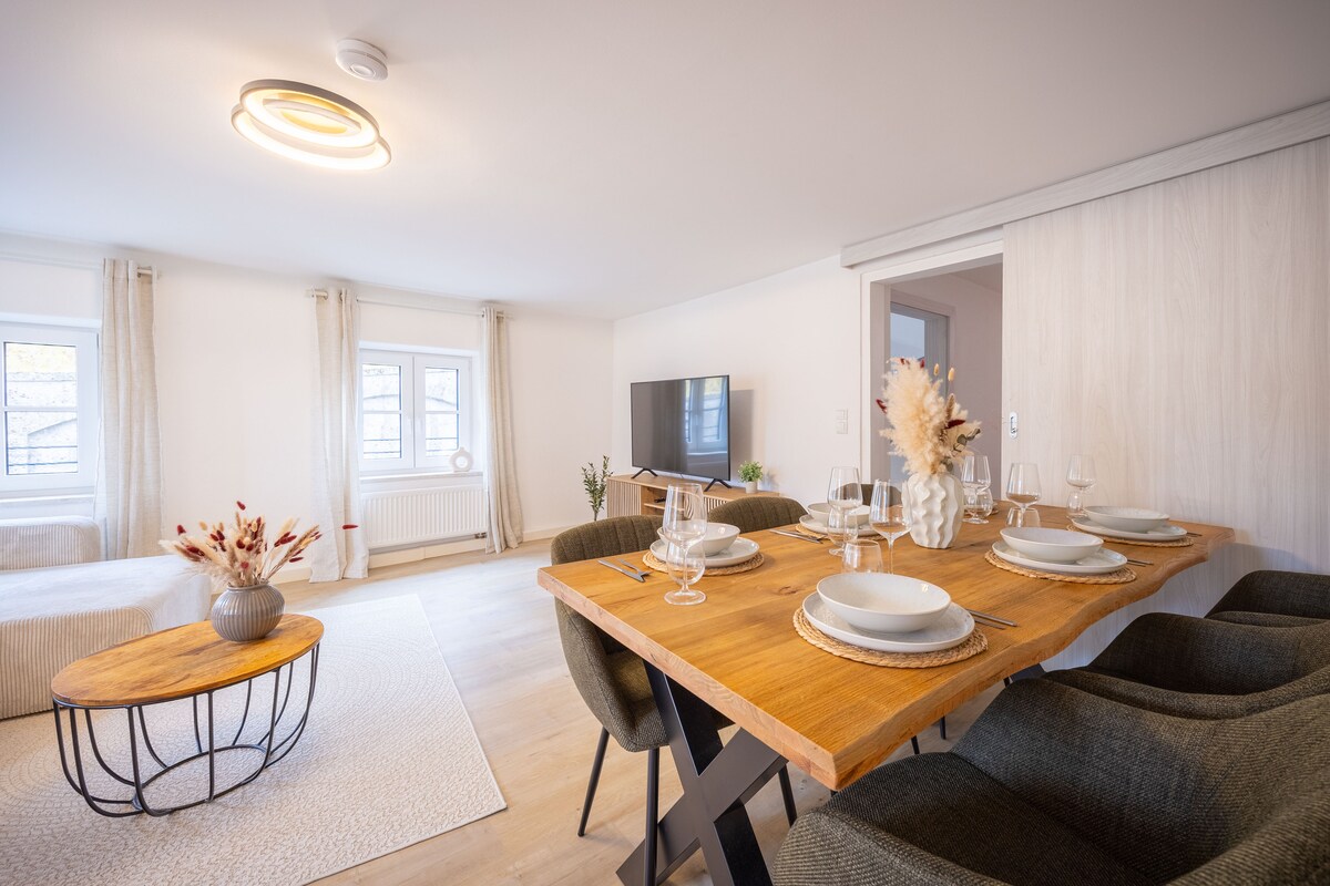 NUEVO: ¡Boleto gratuito para autobús y tren en Salzburgo incluido! Disfruta de nuestro moderno apartamento en Leopoldskron, céntrico, junto al río y rodeado de naturaleza. El casco antiguo está a pocos minutos. - Cama matrimonial acogedora. - Sala de estar con sofá cama y espacio de trabajo - Cocina totalmente equipada, incluida lavadora - Baño con ducha. - Balcón con vistas y barbacoa. - Aparcamiento gratuito