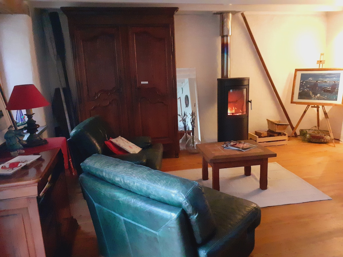 En una granja típica del País Bigouden, le damos la bienvenida al antiguo establo, independiente del resto de la casa. Renovado en 2014 con un espíritu de sobriedad y respeto por lo antiguo, disfrutará en la planta baja de una sala de estar con estufa de leña y cocina equipada. La terraza con vistas al jardín está parcialmente cubierta. Arriba, un dormitorio con una cama de 140 y un dormitorio con una cama de 90, así como el baño y el inodoro. El mar a 2 km.