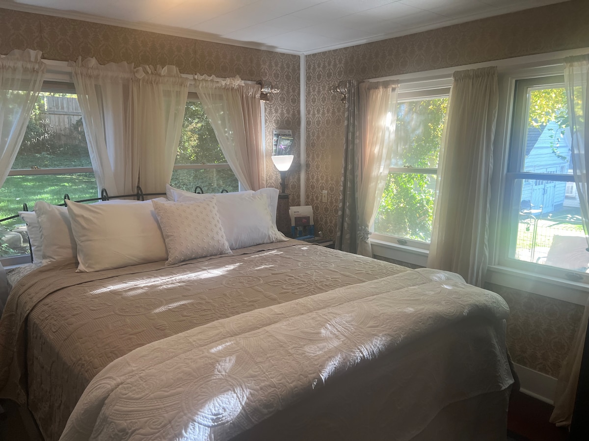 La casa de campo Pine Cone es una de las tres casas de campo separadas en River Rock Gardens. Cuenta con una cama tamaño king con una maravillosa vista a un pequeño jardín y al río a través de puertas francesas. Cuenta con un pequeño baño con ducha. La zona de cocina cuenta con microondas, cafetera Keurig, tostadora y nevera pequeña. La cocina NO está preparada para ningún tipo de cocina importante, planifica en consecuencia. Tenemos cámaras de vida silvestre/seguridad en la propiedad. Ninguna que viole tu privacidad.