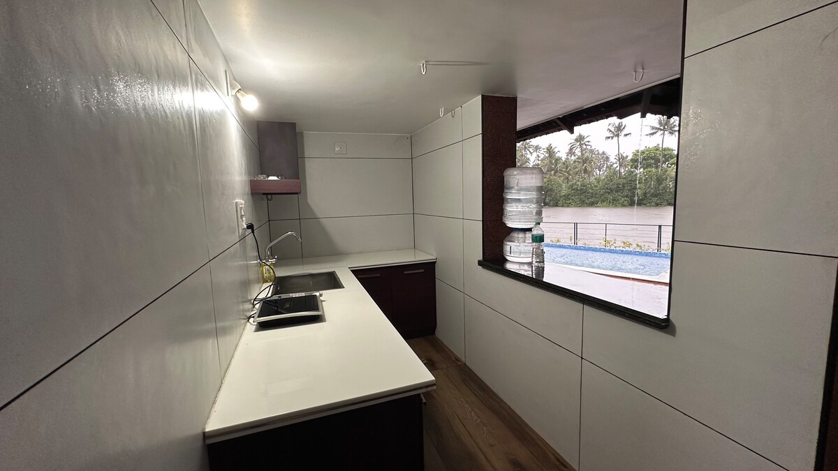 Escápate a tu propia villa privada de lujo de 2 dormitorios a pocos minutos de la playa de Cherai. Relájate en una piscina serena con piscina infantil dedicada, relájate en acogedoras habitaciones con aire acondicionado, cocina en una cocina moderna y disfruta de WiFi rápido. Perfecto para familias, parejas o grupos que buscan comodidad y privacidad. Con servicio de limpieza diario, seguridad 24/7 y un jardín iluminado por el sol, esta villa ofrece la combinación ideal de relajación y encanto junto a la playa. ¡Reserva tu escapada a la costa hoy mismo!