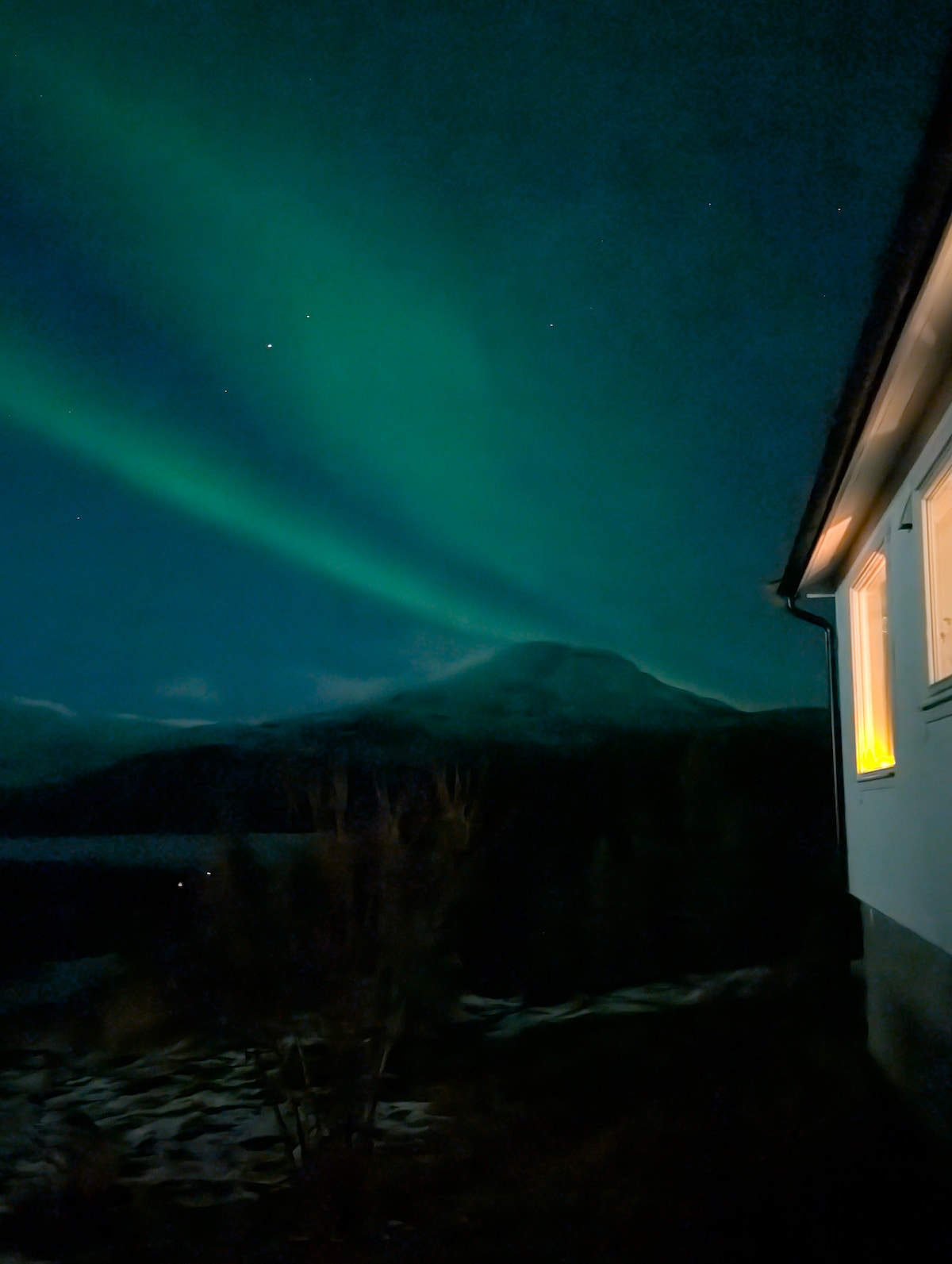 Et koselig hus i rolige omgivelser uten lysforurensing - perfekte forhold for nordlys. Kun 50 minutter kjøring fra Tromsø Lufthavn. Her kan man nyte roen og benytte seg av den nydelige naturen omkring. Tomten strekker seg fra fjell til fjære. Perfekte forhold for friluftsliv året rundt. Eiendommen er stor med muligheter for flotte turer til fots, truger eller ski. Her kan også det ville dyrelivet oppleves. Elg, hare og fugl kan du møte på i terrenget. Sjøtomt med mulighet for fiske fra land.