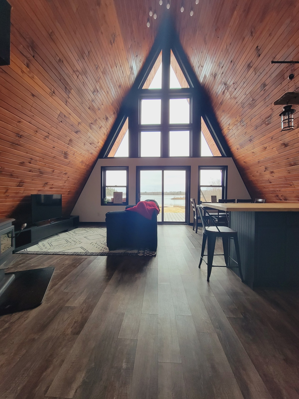 Cabaña A-Frame en el lago Hurón | Atardecer, fogata y ambiente acogedor