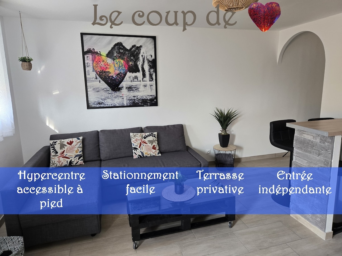 Alojamiento en planta baja con terraza cerca del hipercentro (famoso tapón de champán) y de todos los servicios. La estructura del corazón de Troyes está a menos de 10 minutos a pie. El estadio de Aube está a 5 minutos en coche y el centro Mac Arthur Glenn a 10 minutos. Idealmente situado porque un acceso periférico está a un kilómetro. Totalmente pensado para satisfacer a todo el mundo. Opciones posibles bajo petición: - barbacoa (se proporciona carbón 10€) - Aparato de raclette(10€)