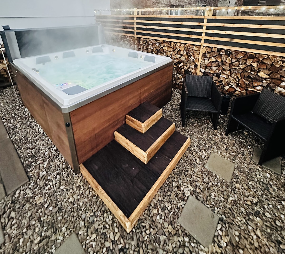Apartamento espacioso y aireado que satisfará todos sus deseos de alojamiento moderno con su propio spa para hasta 4 personas. Apartamento con cama de matrimonio tamaño king (180x200) y sofá cama en el salón para 2 personas, cocina americana y terraza con bañera de hidromasaje. Desde el jacuzzi podrá disfrutar de una vista panorámica de las montañas circundantes. ¿Qué más se puede pedir? Ponga los pies sobre la mesa y relájese en este alojamiento tranquilo y elegante. El edificio también incluye una sauna finlandesa.