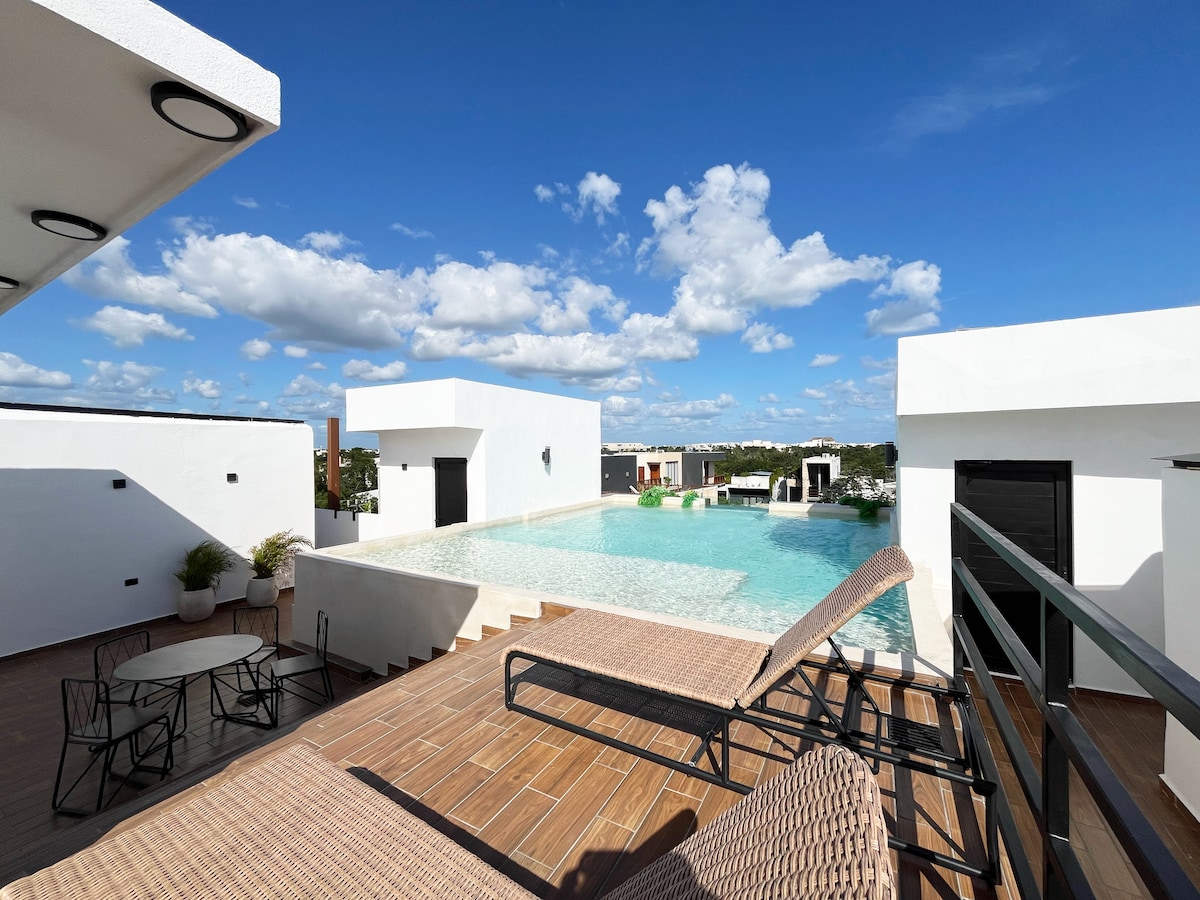 Nuevo apartamento de lujo de 2 dormitorios y 2 baños con piscina en la azotea en Tulum