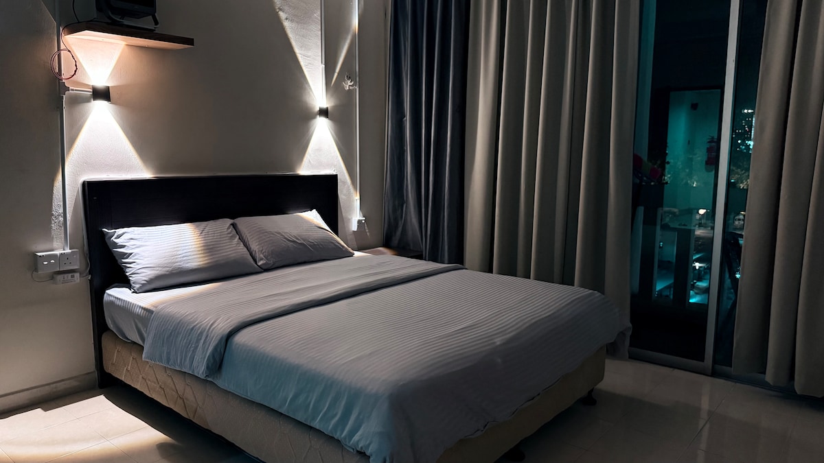Nuestra casa de familia está ubicada en medio de la ciudad de Bharu Kelantan, a solo unos pasos del restaurante y el mercado, varias instalaciones como lavandería, gimnasio, piscina y también, nuestra unidad es de tipo estudio, pero hay una habitación dividida, 1 habitación con cama tamaño queen. También está equipado con instalaciones de cocina.