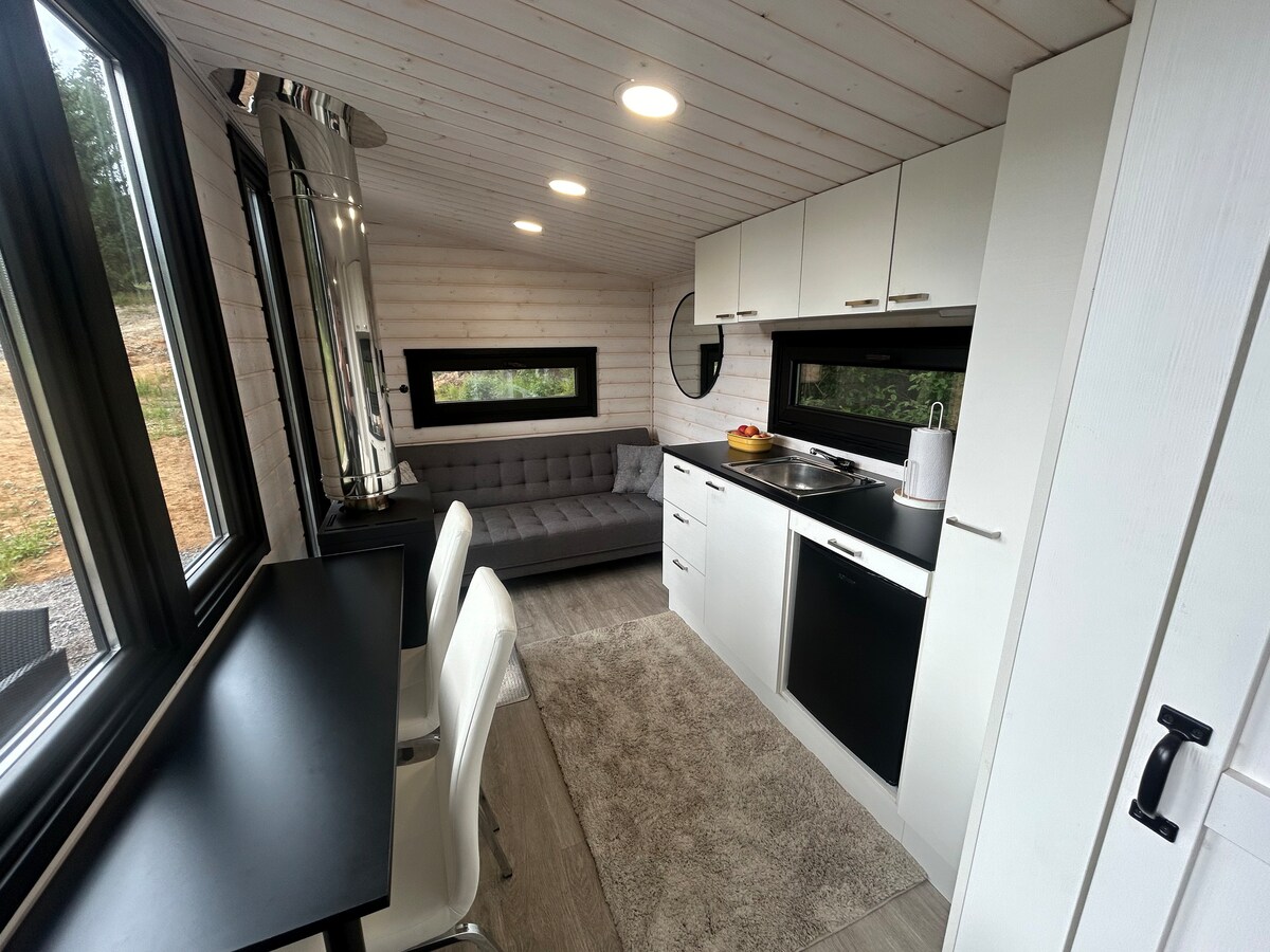 Elegante cabaña urbana/minicasa de aprox. 45 m2 con vistas despejadas al lago. Aquí puedes sentirte como si estuvieras en una casa de campo, a pesar de que el centro de Helsinki y el aeropuerto están a menos de 20 km de distancia. La casa recientemente renovada está acompañada de una acogedora zona de patio rodeada de maravillosos paisajes. Por un cargo adicional, el jacuzzi al aire libre con una vista increíble al lago está disponible para su uso. Cuatro adultos pueden dormir cómodamente en la cabaña, posiblemente más si se aprietan.
