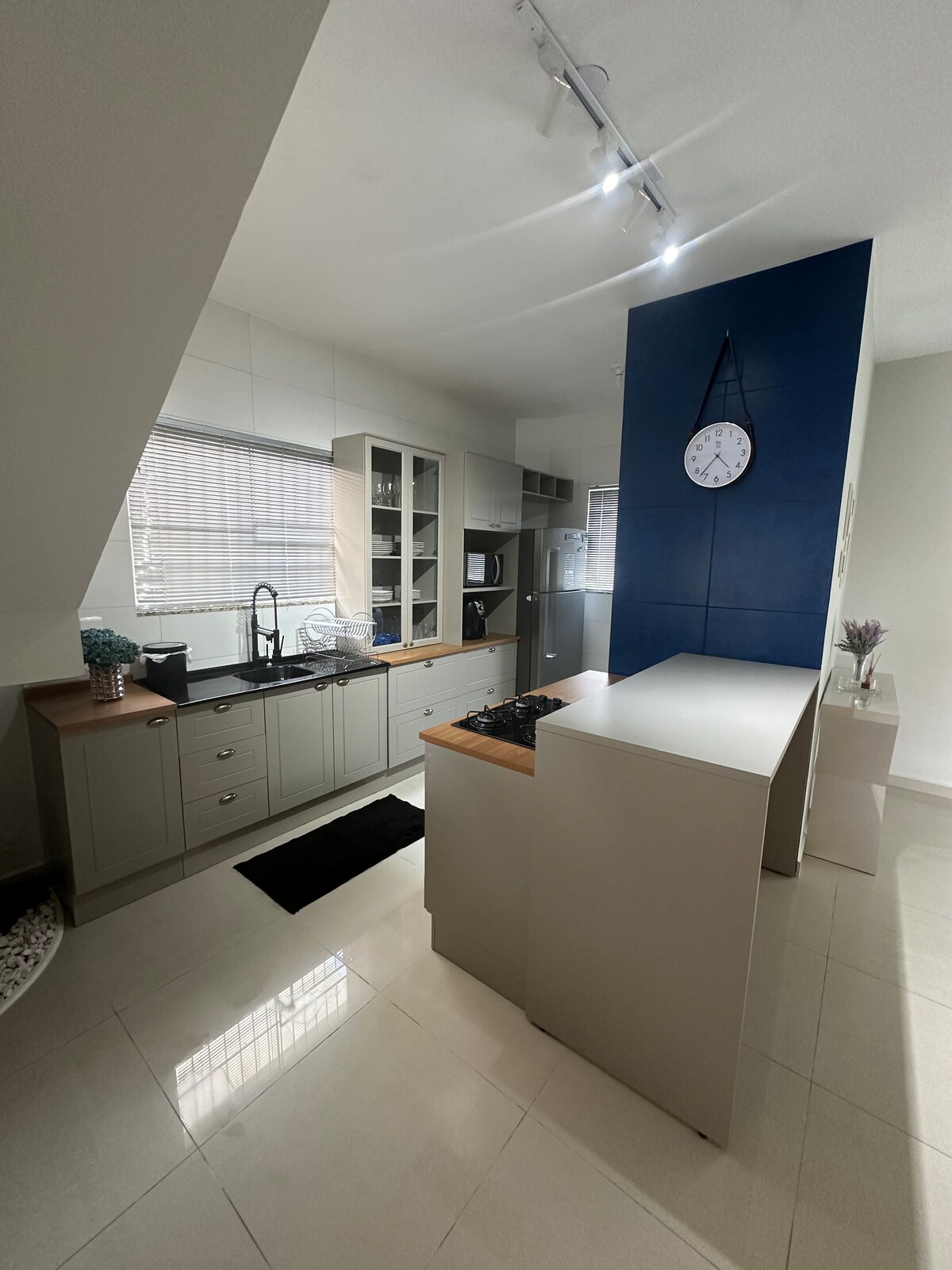 Casa Brisa do Triângulo: alojamiento completo a 100 m de la playa de Enseada, en São Francisco do Sul (SC). El nombre proviene del balcón, que siempre está ventilado por la brisa marina, y la forma triangular del terreno. Cuenta con 2 dormitorios con aire acondicionado, una cocina completa integrada en la sala de estar, un baño y una zona exterior cubierta. Lote de césped para hasta 3 autos, vistas a Morro da Enseada, cisterna y parrilla portátil. A 500 m de Prainha (Praia da Saudade) y a 1 km de Praia do Molhe. Espacio de trabajo. Wifi. Cuna.