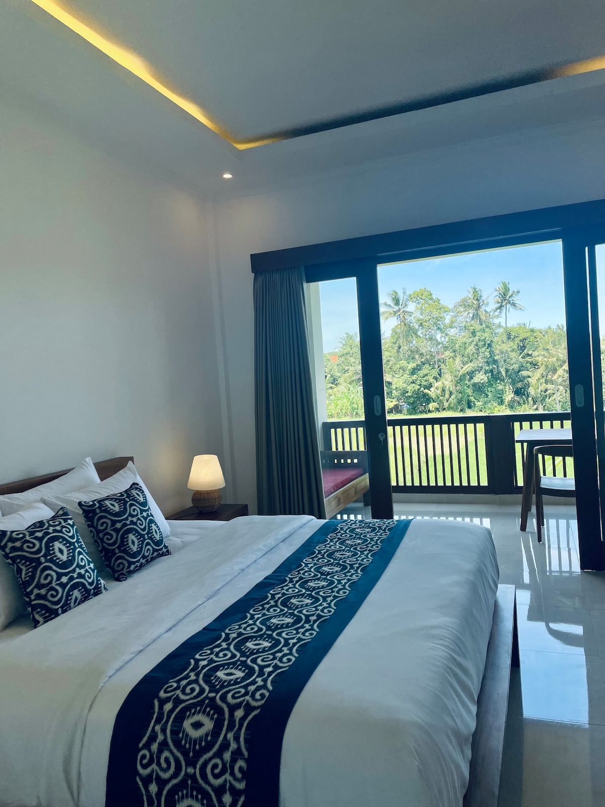 Nuestras amplias y cómodas habitaciones tienen una cama tamaño queen y ofrecen ducha fría y caliente, acceso wifi, ventilador y aire acondicionado. El desayuno está incluido. Estamos situados a solo 700 metros del bosque de los monos y a 10 minutos a pie del centro de Ubud. También ofrezco servicio de taxi para recogerte, dejarte y hacer excursiones de un día por Ubud: Terraza de arroz Templo de agua bendita Plantación de café Cascada Templo de la cueva del elefante Senderismo al amanecer Rafting Tour en bicicleta Clase de cocina Etc. Pídemelo para obtener más información:)