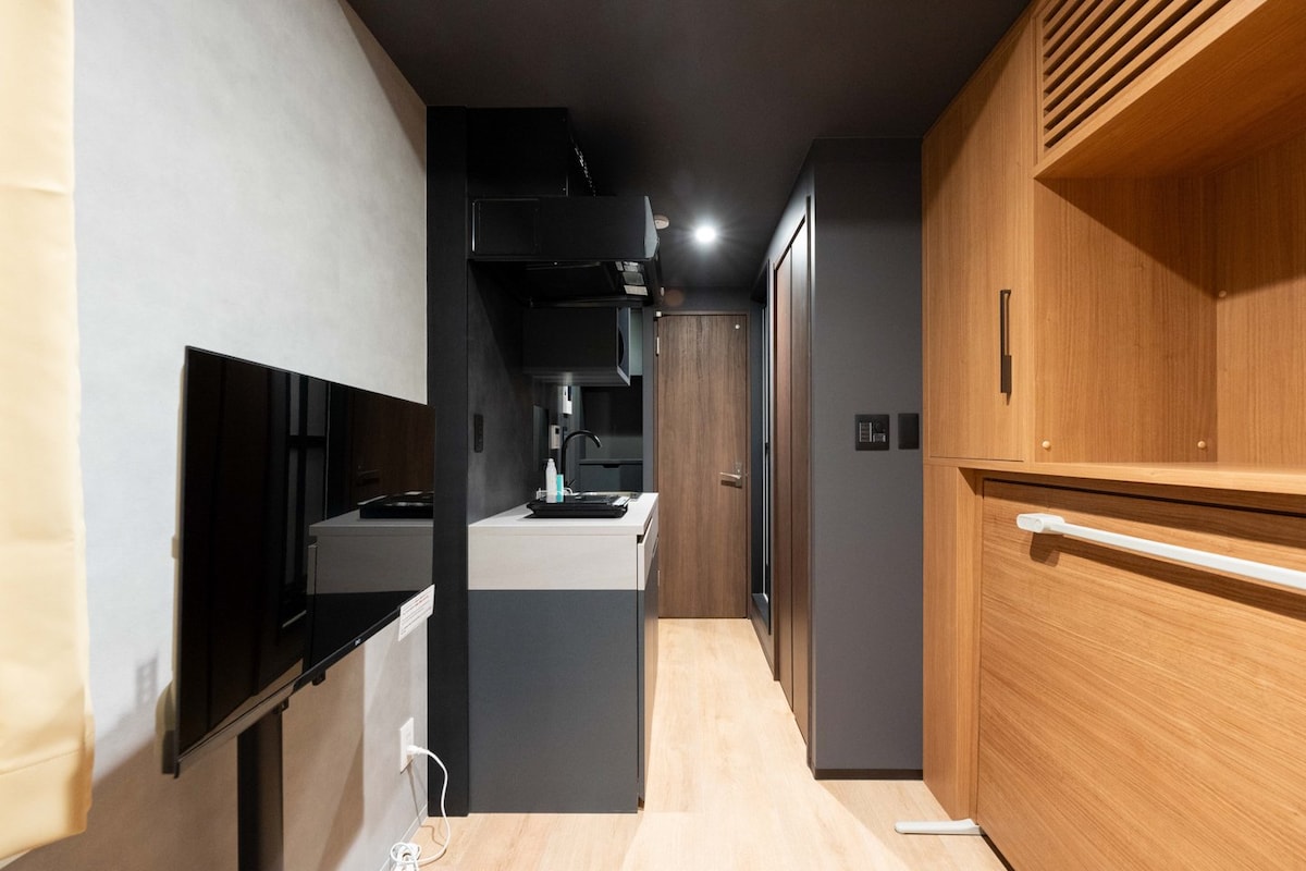 Estudio Japandi de nueva construcción, a pie de la estación JR y del metro, lavadora con secadora, ascensor, consigna de equipaje
