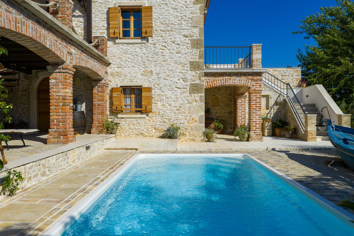 Casa de piedra romántica y elegante completamente renovada y amueblada de una manera moderna, situada en una posición elevada en el pueblo de Žman en una ubicación reservada y tranquila, pero al mismo tiempo cerca de todos los servicios esenciales.