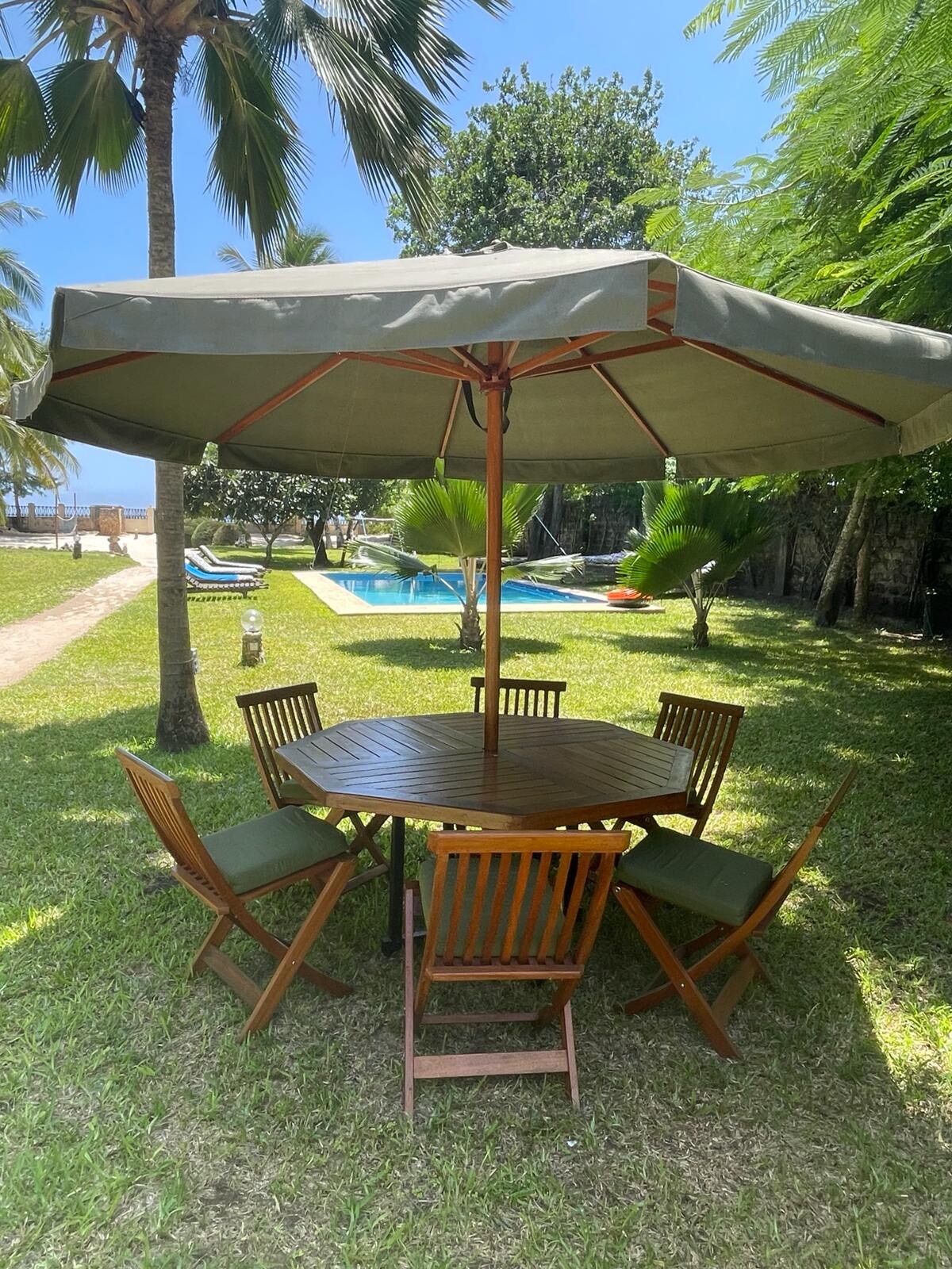 Beachfront house with direct access to the Indian Ocean. Five bedrooms overlooking the most beautiful beach in Africa . All bedrooms are air conditioned , furnished with fine Lamu style furniture with ensuite bathrooms. 10x5mt swimming pool, Wifi ,Smart tv with Netflix free parking. Perfect for families and couples.Barbecue set is available. Private chef , security CCTV , privacy . My home is your home. Kitesurfing, sup , foil lessons , snorkelling, diving available at 50 meters from the house.