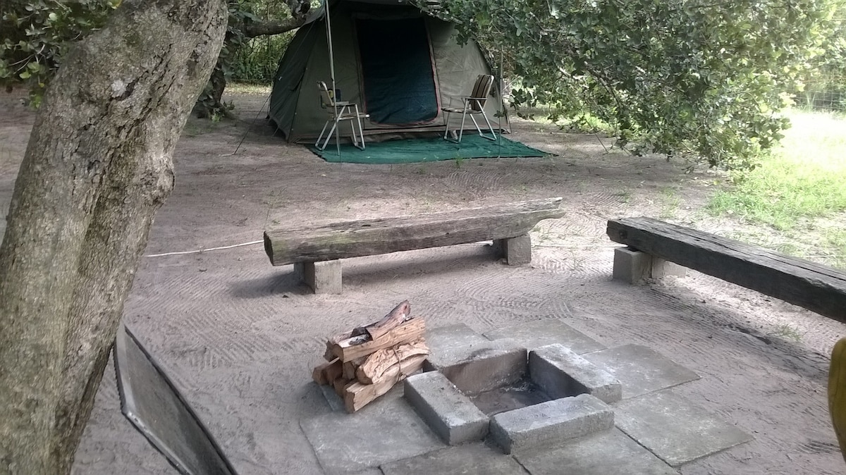 Estas tiendas de campaña están equipadas con dos camas individuales o una cama doble (bajo petición) y un baño privado al aire libre que consta de una ducha. Hay una encantadora zona de braai y wifi disponible. Escapada inolvidable.