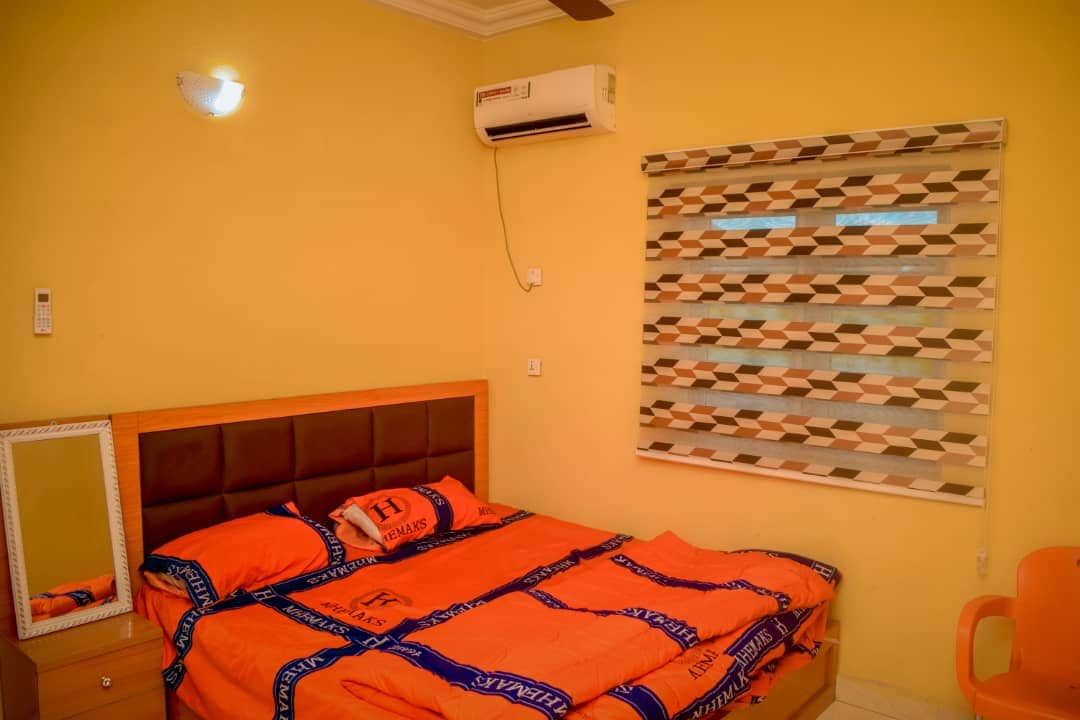 Casa clásica amueblada de cinco dormitorios con baño completo incorporado para cada habitación situada en el corazón de la ciudad de Owerri en una comunidad cerrada con la máxima seguridad. en un complejo cerrado con seguridad de renombre Encendido solar las 24 horas en el interior. Proyectores solares con cámara exterior. Estacionamiento gratuito dentro del complejo. La casa tiene cinco dormitorios,seis camas, hierro y tabla de planchar . 1/2 baño para la sala La cocina tiene molinillo,tostadora,microondas.