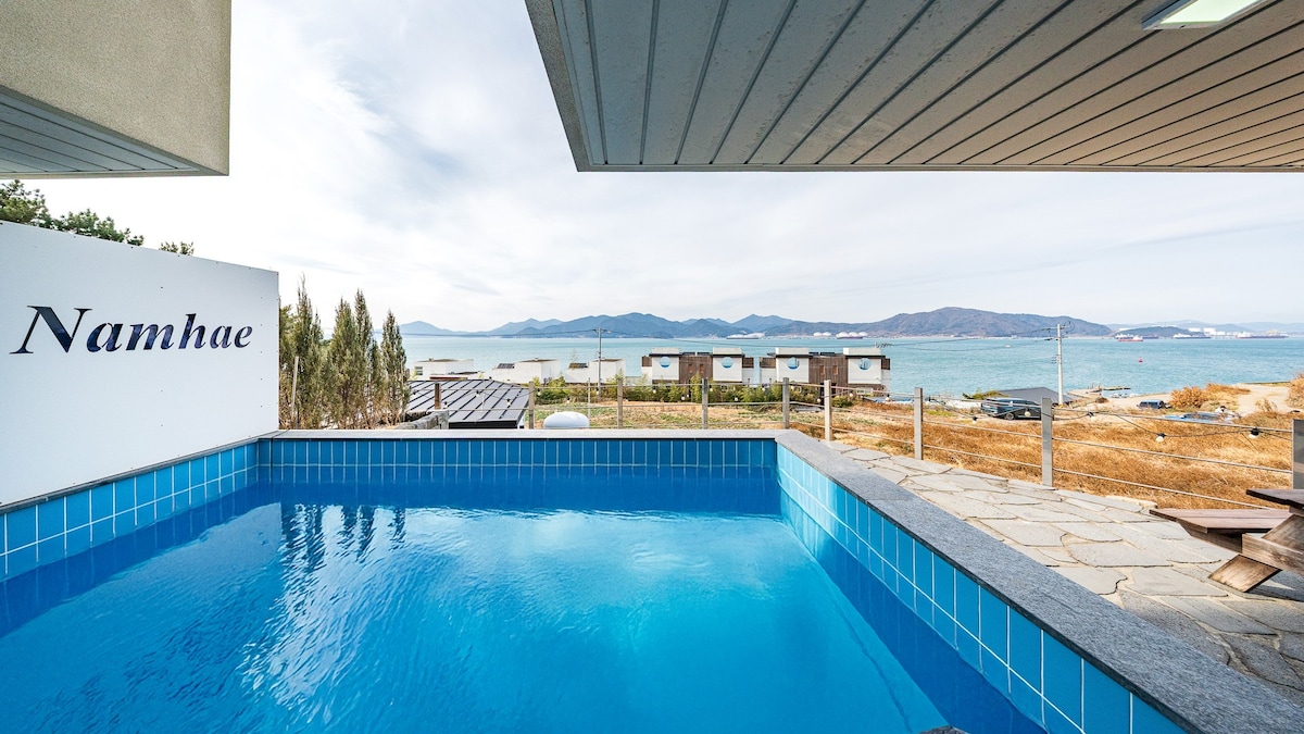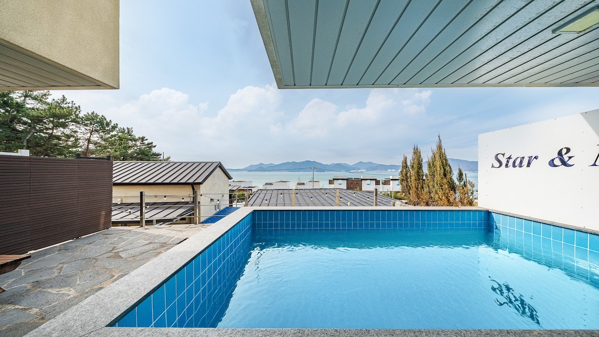 [NUEVO] Vista al mar, se admiten perros, bonito jardín, villa con piscina, piscina al aire libre, casa privada, mar de noche de Yeosu [Olivia Stay]