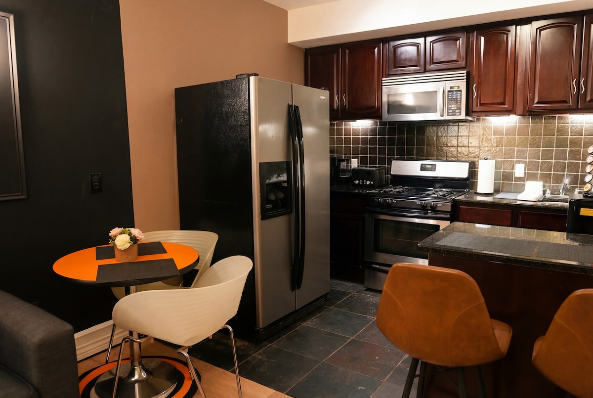 Alójate a pocos minutos de Manhattan en este dúplex luminoso y cuidadosamente diseñado de 3 dormitorios y 2 baños en Union City. Ideal para familias y viajes de trabajo, el alojamiento cuenta con interiores elegantes, Wi-Fi rápido, lavadora en la unidad y cocina totalmente equipada con lavavajillas. Los huéspedes también pueden disfrutar de un patio trasero privado con acceso a la parrilla, ideal para relajarse después de explorar la ciudad. Con fácil acceso a Nueva York, Hoboken y el estadio MetLife, este alojamiento ofrece un espacio cómodo y elegante para hospedarte.