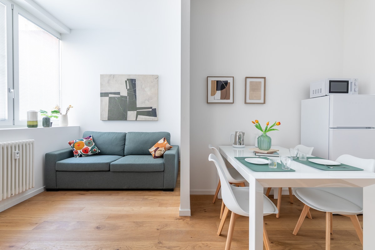 Moderno y acogedor apartamento en Porta Romana con zona de estar y comedor, cama doble separada por práctico divisor. Ideal hasta 3 personas gracias al cómodo sofá cama. Aire acondicionado, Wi-Fi y Smart TV con Netflix. Cocina completa con hervidor, moka, agua filtrada y microondas. Excelente ubicación: Duomo a 3 paradas de metro M3 o 18 min caminando, en uno de los barrios más característicos y mejor conectados de Milán.