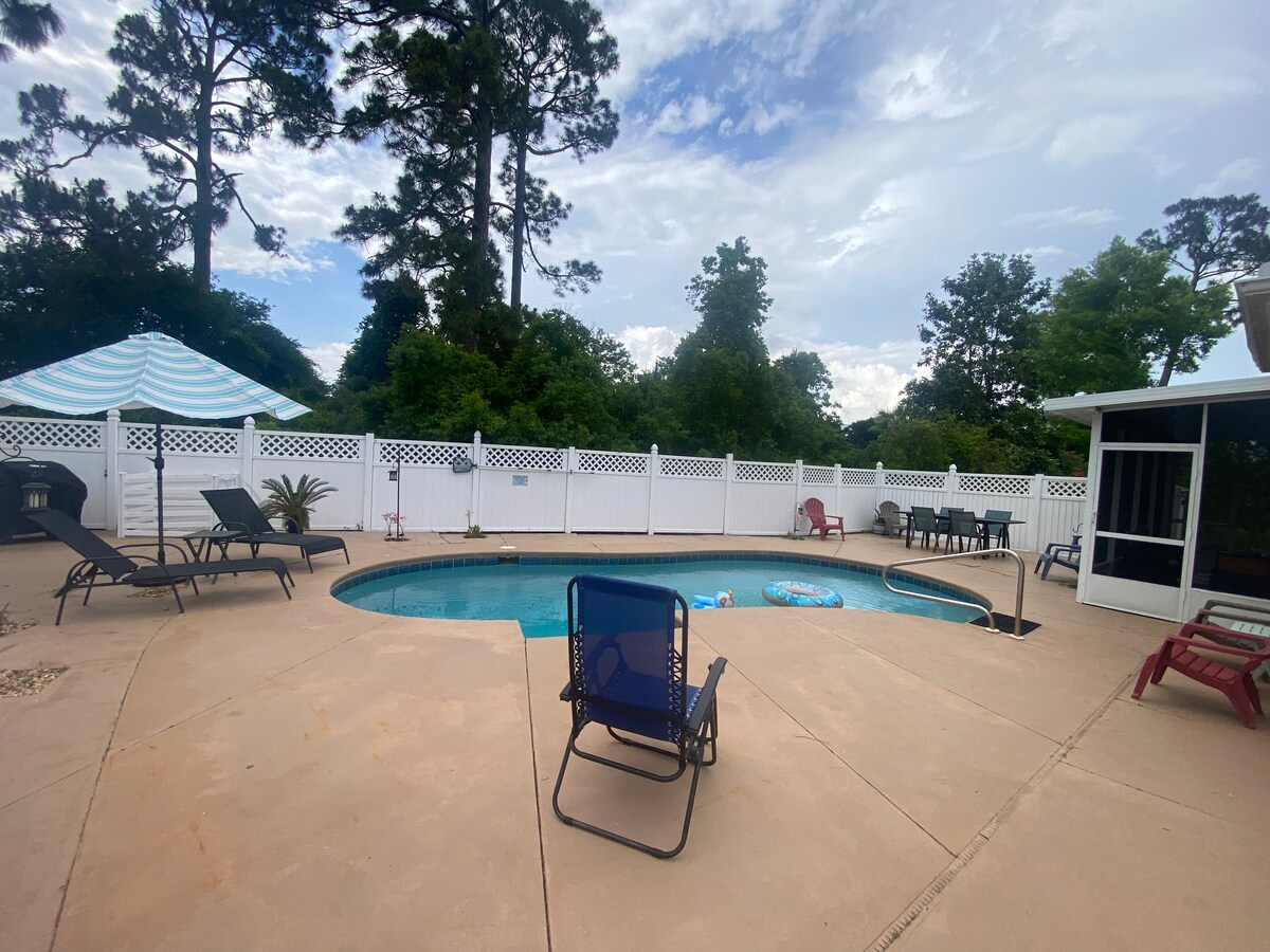 Beautiful home with something that is hard to fine just steps from the beach, a LARGE, private outdoor space with heated pool and bathhouse. Located near St. Andrews State Park and is in walking distance to several bars and restaurants. For the children’s entertainment there is a boardwalk style family entertainment park with games, rides, go karts, miniature golf. Within a short 5-minute drive you can explore all the entertainment and other popular Panama City Beach attractions.