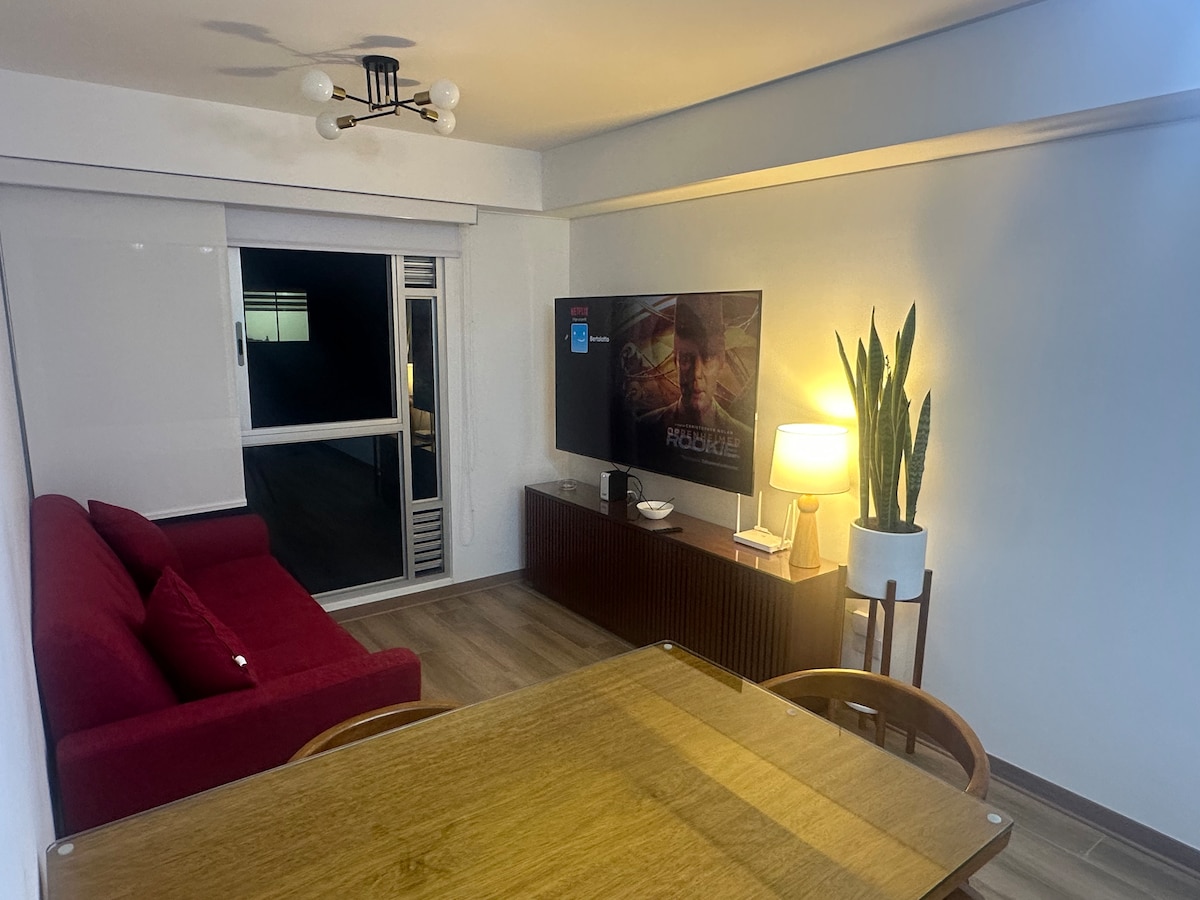 Bienvenidos a nuestro moderno departamento en estreno, ideal para tu comodidad. Cuenta con cocina equipada, sala comedor, 3 habitaciones, 2 baños y lavandería. Disfruta de TV con series y películas de todas las plataformas de Streaming, Wi-Fi de alta velocidad y un acogedor hall para trabajar. El edificio ofrece áreas comunes: piscina, gimnasio, coworking, sala de juegos. Ubicado en una zona segura y accesible, cerca de supermercados, tiendas y transporte. Perfecto para una estadía memorable