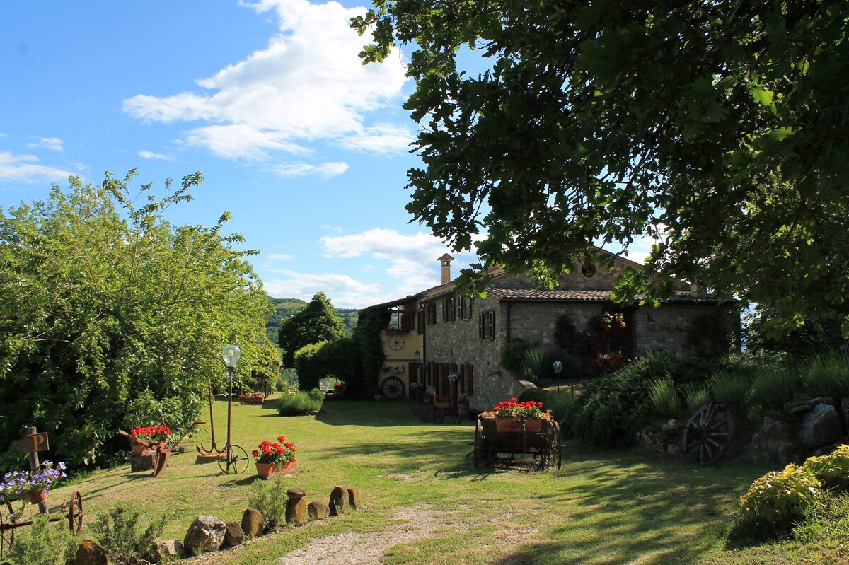 Relájate con toda la familia en este alojamiento escondido entre las colinas biológicas de Montefeltro. El agroturismo se encuentra en una posición estratégica, a solo 2 km del centro histórico, inmerso en la naturaleza. Urbino es una ciudad Patrimonio de la Unesco y símbolo del Renacimiento. La propiedad está al lado de la casa principal de la familia propietaria. Los huéspedes también pueden dar paseos por prados y bosques y recorrer el carril bici conectado con el centro histórico.