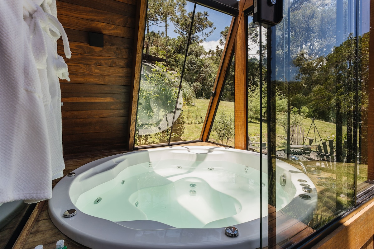 Cabaña en Urubici con bañera de hidromasaje.