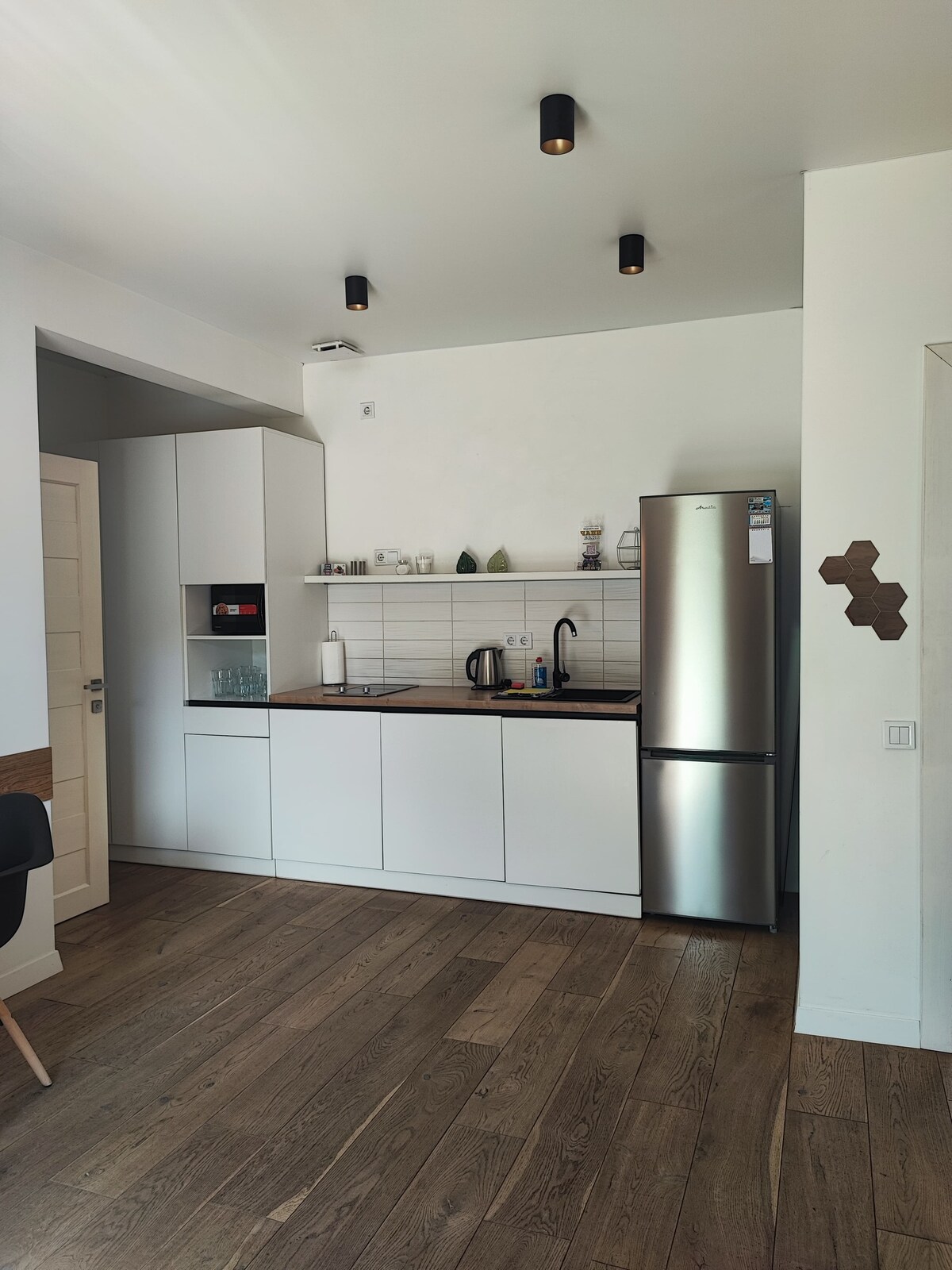 Perfecto para unas vacaciones familiares con niños. Primer piso: vestíbulo de entrada, cocina y baño con tina; 2 .ª planta: dos habitaciones. Nueva renovación. Electrodomésticos: nevera, lavadora, estufa eléctrica, microondas, hervidor, cafetera, televisores, secador de pelo, wifi. Cerca hay toda la infraestructura necesaria: estación de autobuses y trenes, establecimientos de alimentos, comercios, farmacias. La distancia a Dragobrat es de 32 km, de Bukovel a 50 km, a los lagos salados de Solotvyno a 48 km.