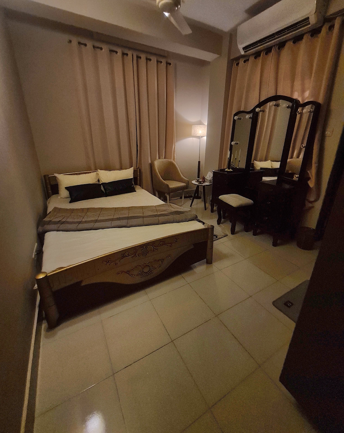 Relájate en este elegante departamento de 3 dormitorios con wifi de alta velocidad, aire acondicionado y TV inteligente. A pocos minutos del aeropuerto y la estación de metro, ofrece fácil acceso a los mejores lugares de Dhaka. Perfecto para familias, turistas o viajeros de negocios, el espacio combina la mayor comodidad y conveniencia. Disfruta de comodidades, una cocina totalmente equipada y una estancia tranquila ideal tanto para escapadas cortas como para estancias más largas. Tu retiro perfecto en Uttara te espera.