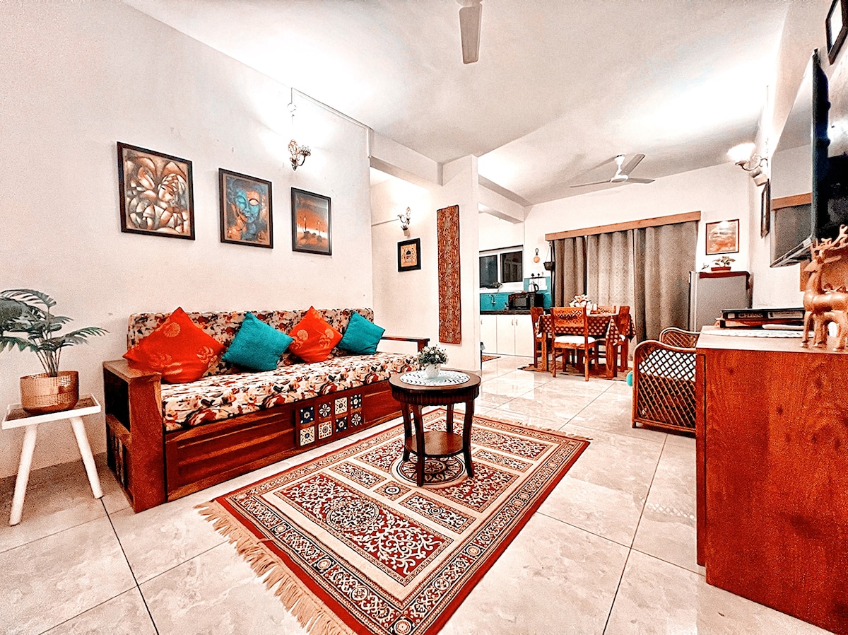 Alójate en un apartamento totalmente amueblado a pocos pasos de la playa de Patnem. Disfruta de comodidades modernas que incluyen wifi de alta velocidad, TV inteligente con acceso OTT, aire acondicionado, lavadora, géiser y agua potable filtrada. La cocina viene equipada con todos los utensilios esenciales para cocinar fácilmente al estilo casero. Relájate junto a la piscina o deja que los más pequeños exploren el área de juegos en el lugar. Ideal para parejas, viajeros solitarios o familias que buscan una escapada tranquila y cómoda junto a la playa.