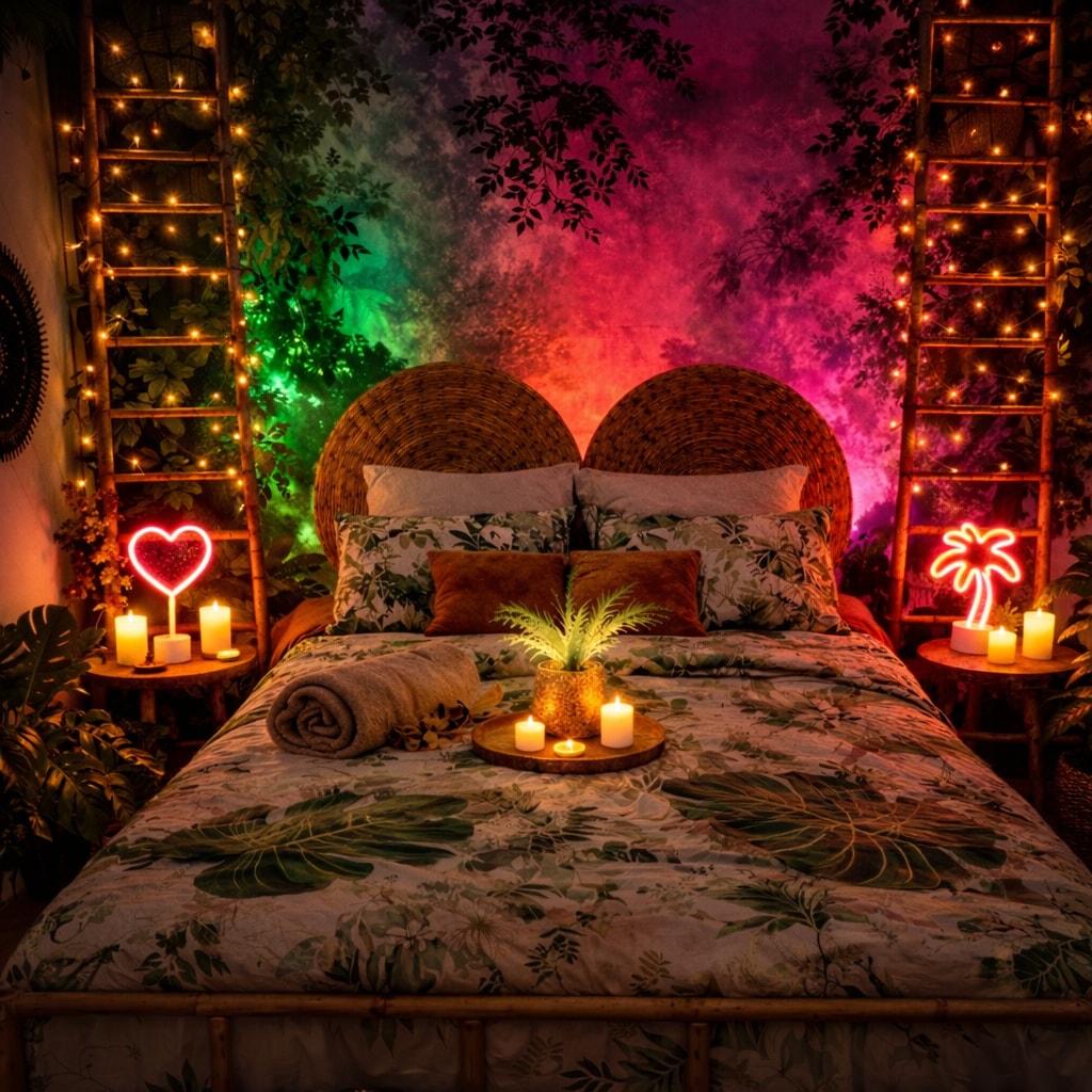 ✨ Descubre el Mirage Tropical, un paréntesis refinado a orillas del Loira 🌴. Disfrute de un spa, una mesa de masajes, una elegante terraza y un exótico espacio selvático para escapar. Diviértase jugando a los dardos, comparta un aperitivo exótico o relájese en un ambiente único. Por la noche, la habitación se ilumina con colores cautivadores para un momento elegante y romántico💖. Aquí, cada detalle sublima su estadía para crear recuerdos memorables.🌴❤️❤️💕💕💕👄🫂❤️