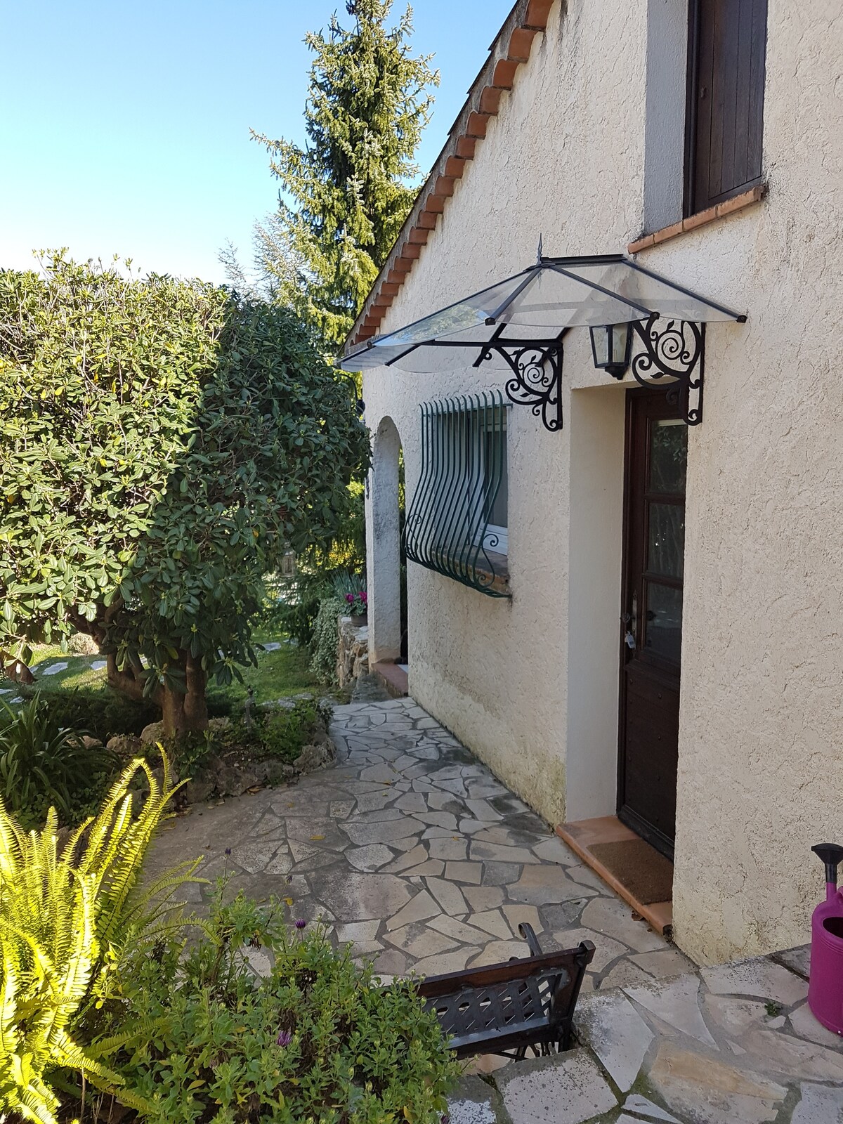 Petit STUDIO très bien équipée avec entrée et parking privé dans une grande Propriété avec piscine et jacuzzi chauffés du 10 avril au 30 octobre . La piscine extérieur et jacuzzi ainsi que le jardin sont partagés mais assez grand pour profiter chacun son espace de tranquillité . Je vis dans la bastide principale . Un Havre de Paix entouré d oliviers centenaires . A 35 minutes de l aéroport de Nice et divers villages provençaux et 14km de Cannes . Tele grand écran /abonnement Netflix