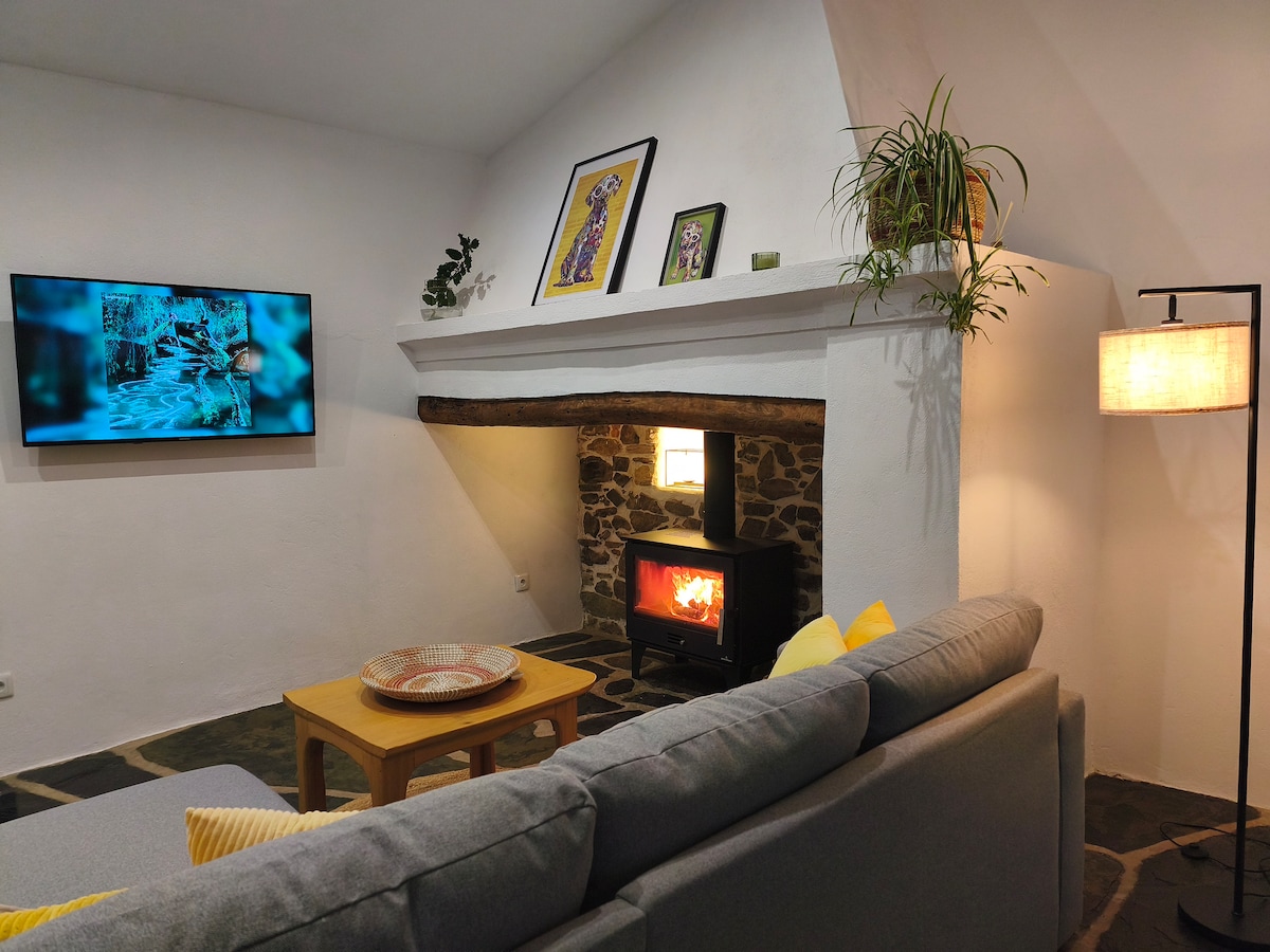 Nuestra pequeña casa de piedra se encuentra junto a un arroyo y tiene vistas a las hermosas colinas y prados llenos de olivos y alcornoques. En el jardín encontrarás algunos árboles frutales, hierbas y flores. No muy lejos hay una bonita cascada para disfrutar de los calurosos días de verano. Este es un lugar tranquilo para relajarse. Aquí puedes sumergirte en la belleza de la naturaleza, disfrutar del cielo lleno de estrellas y escuchar el sonido de las campanas de las ovejas.