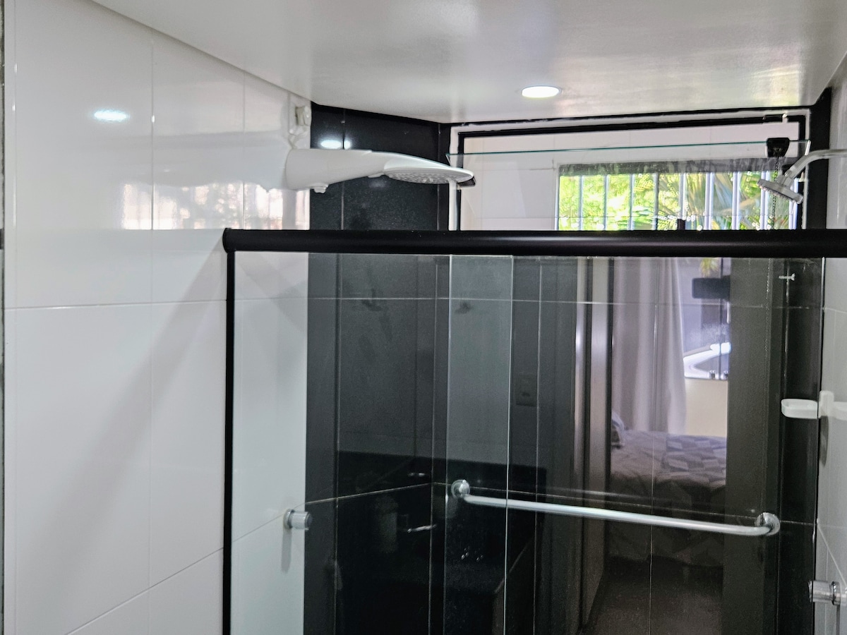 Hermoso y cómodo apartamento con suite, sala de estar/cocina, estacionamiento privado para 1 vehículo, ubicado en comunidad cerrada y muy cerca de la playa (50 metros). La suite cuenta con: TV de 42pulgadas y aire acondicionado dividido. En la cocina: estufa, refrigerador, microondas, sandwichera, licuadora y cafetera. En la sala de estar: un sofá cama. El condominio: en uso colectivo, los huéspedes pueden disfrutar de piscina, salón de baile, sistemas de cámaras, wifi en las zonas exteriores y apoyo de una casa.